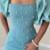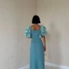 Mint İşlemeli Kolu Garnili Elbise