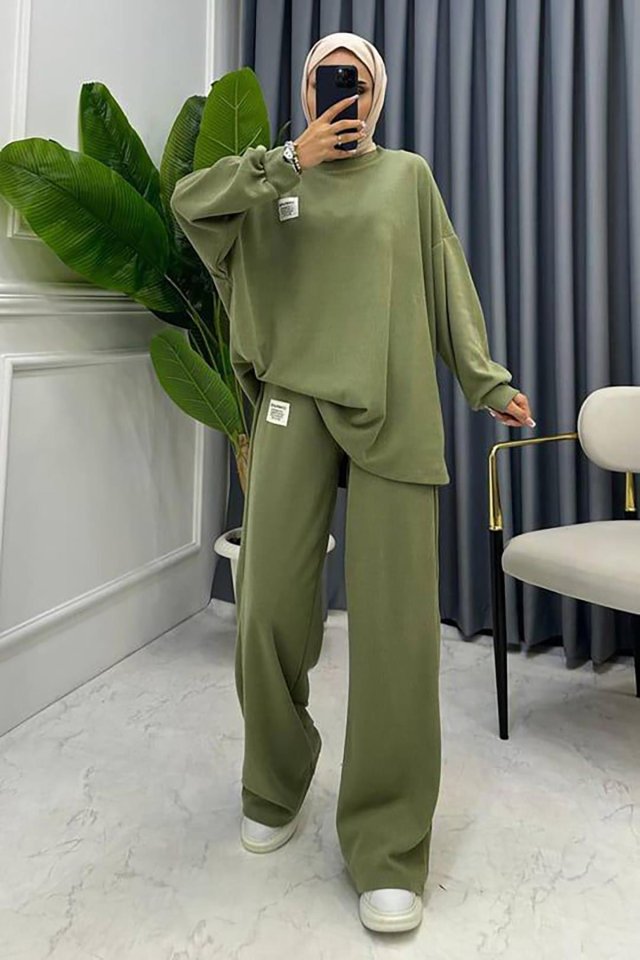Mint Klasik Fitilli Kazak Ve Pantolon Takım