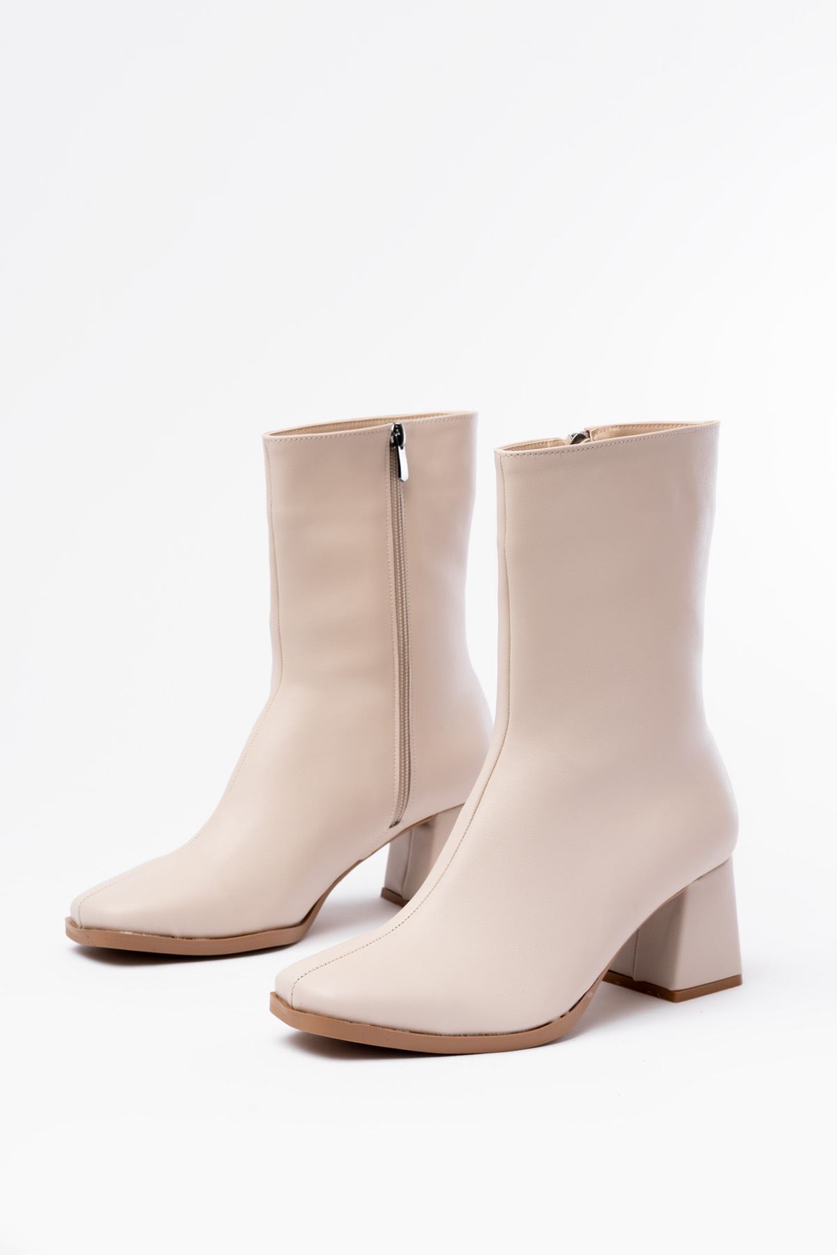 MSK-032 Bej Topuklu Fermuarlı Kadın Bot