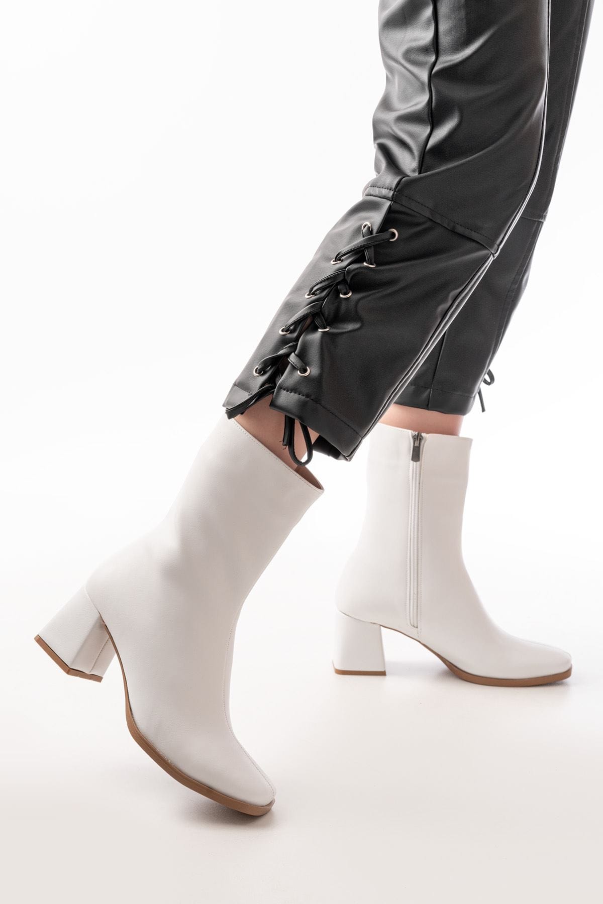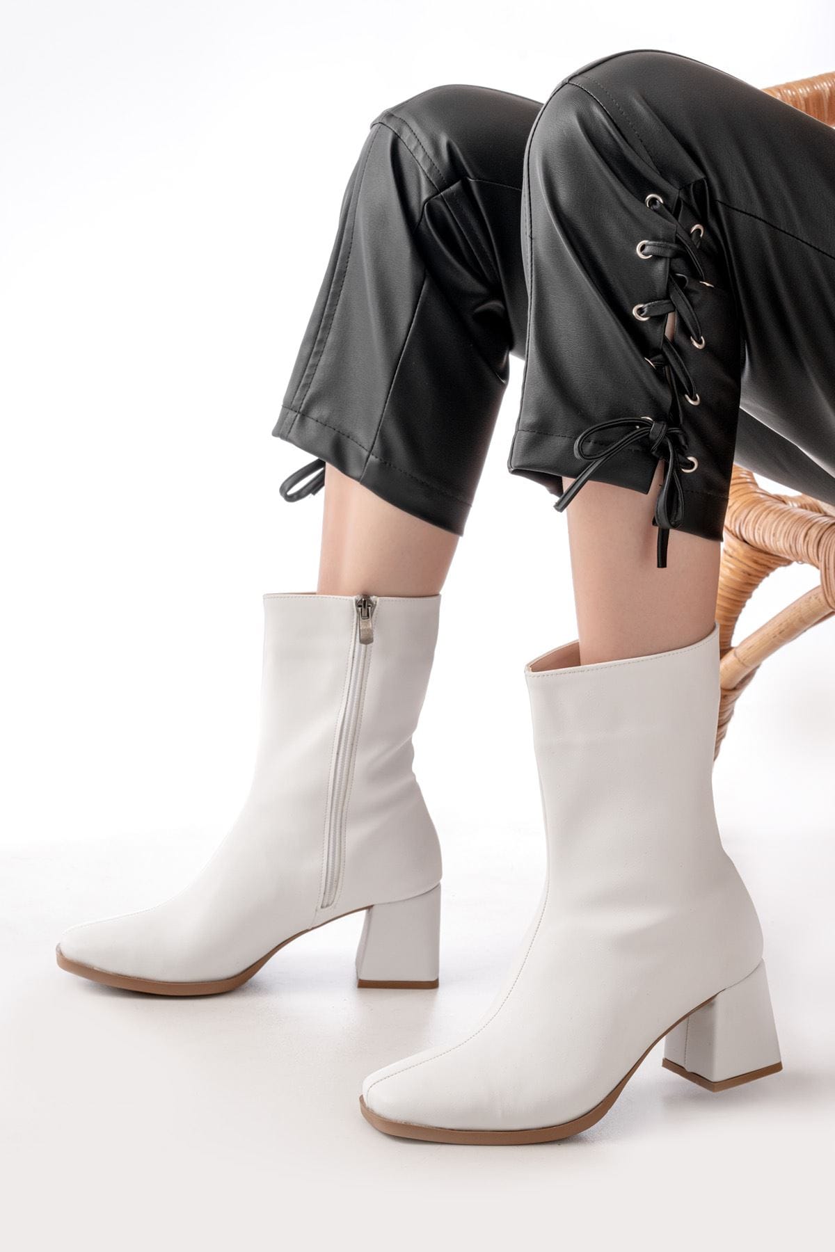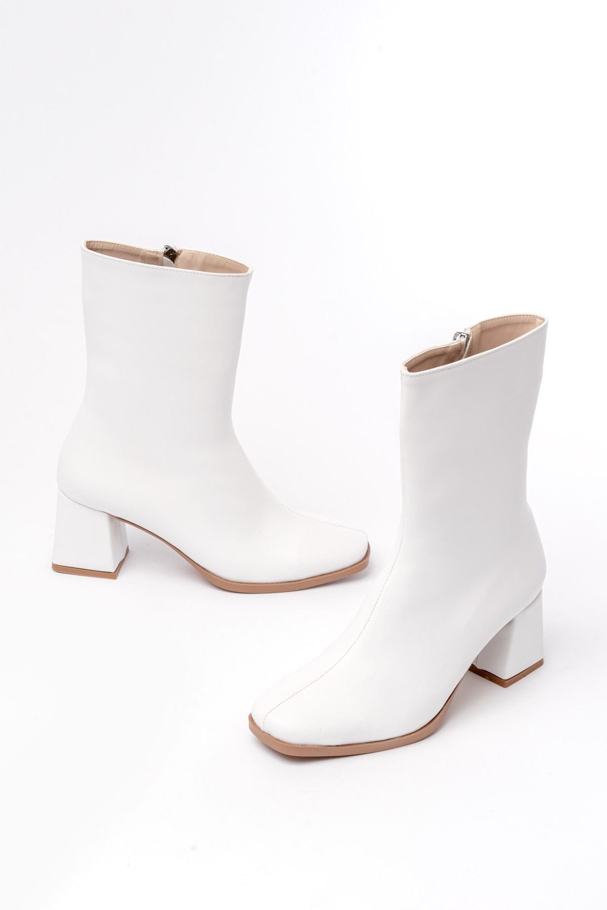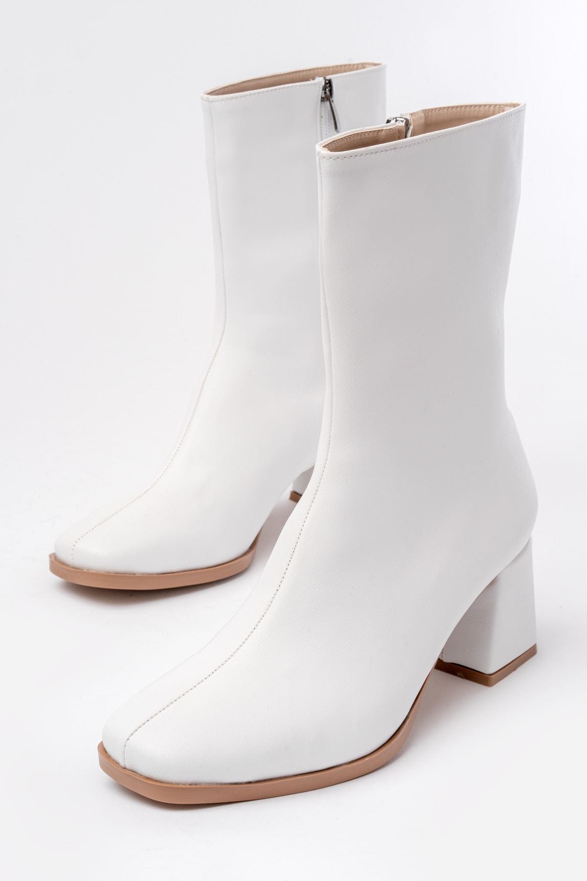 MSK-032 Beyaz Topuklu Fermuarlı Kadın Bot