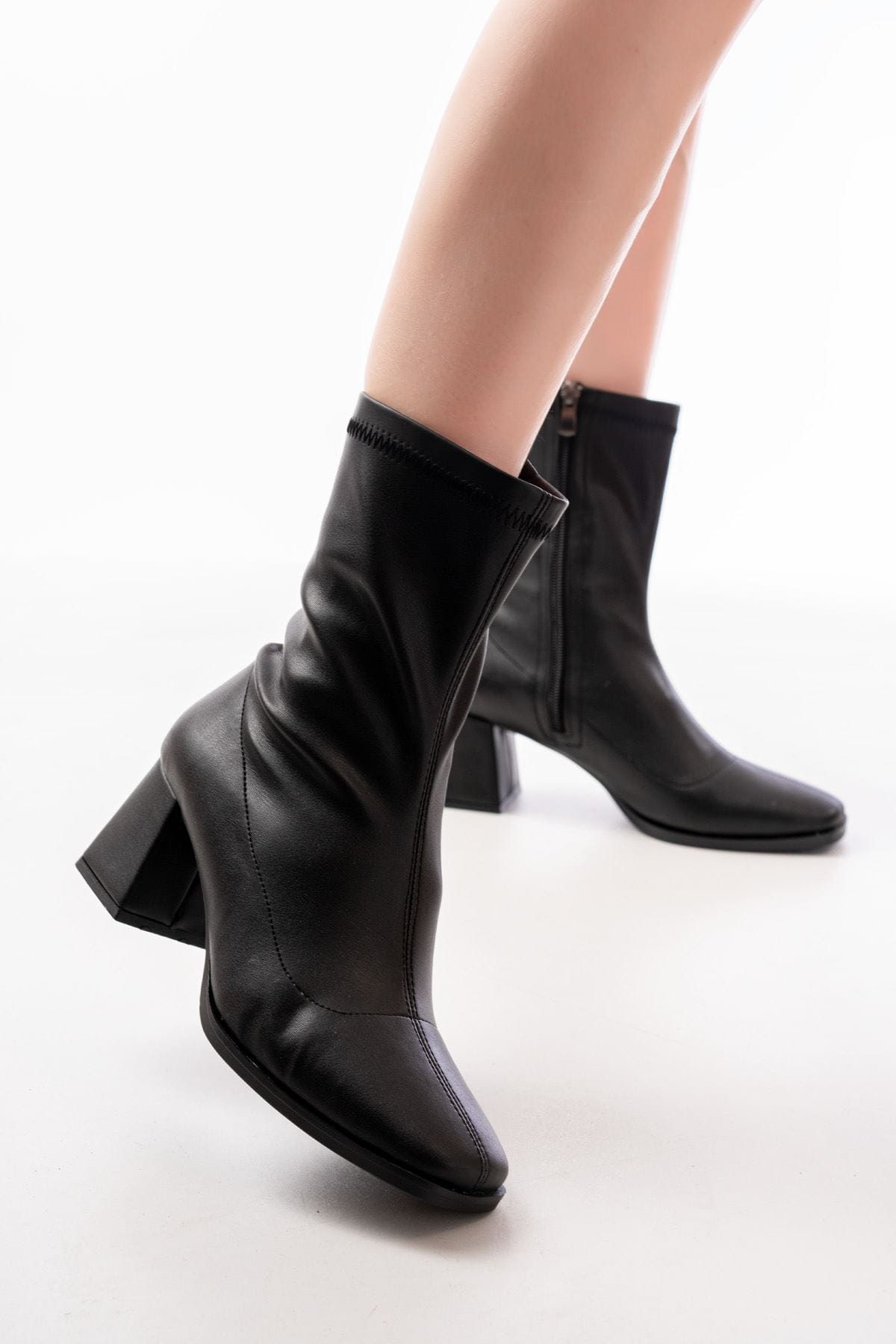 MSK-033 Siyah Topuklu Fermuarlı Kadın Bot