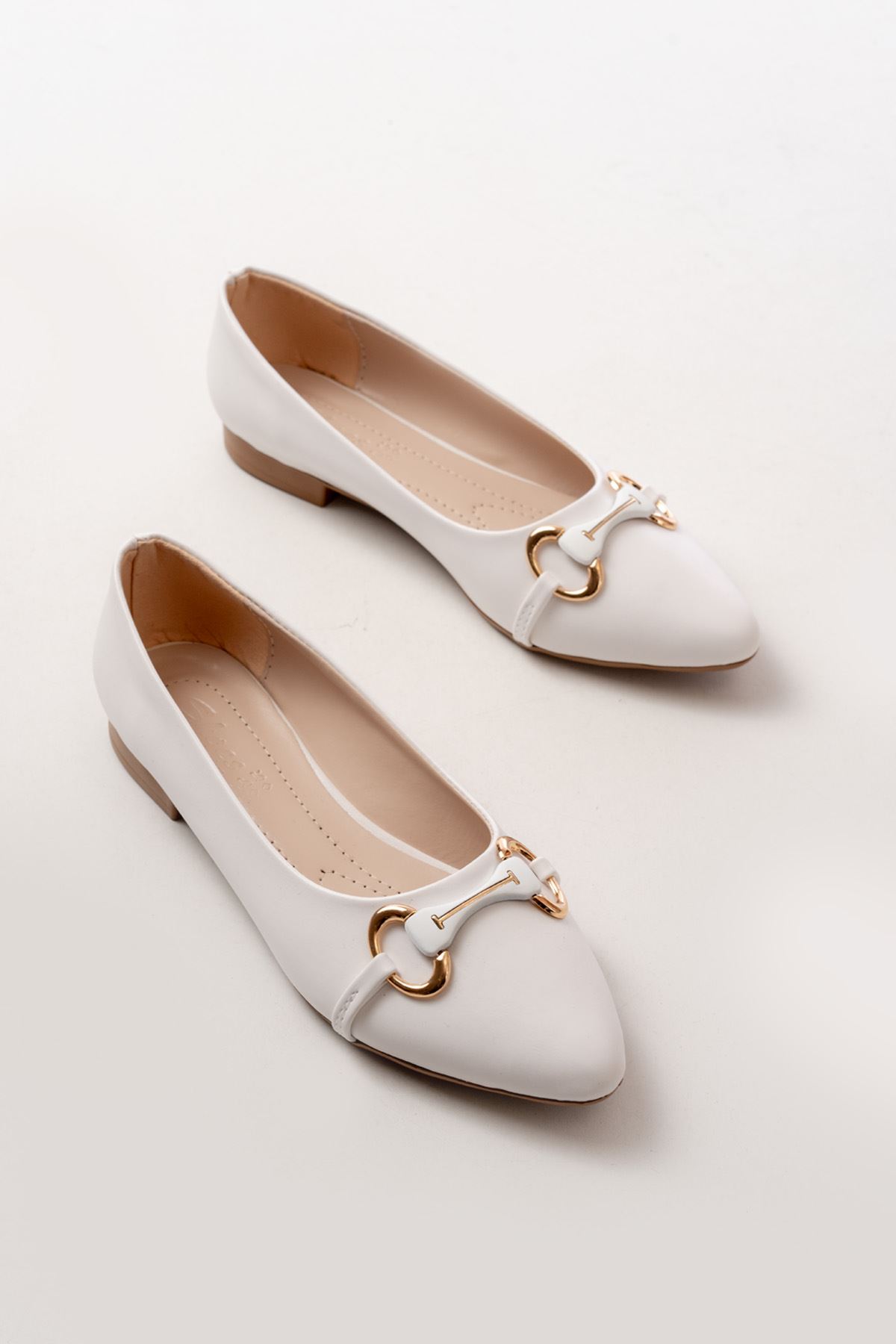İNF-129 Beyaz Günlük Taş Aksesuarlı Babet