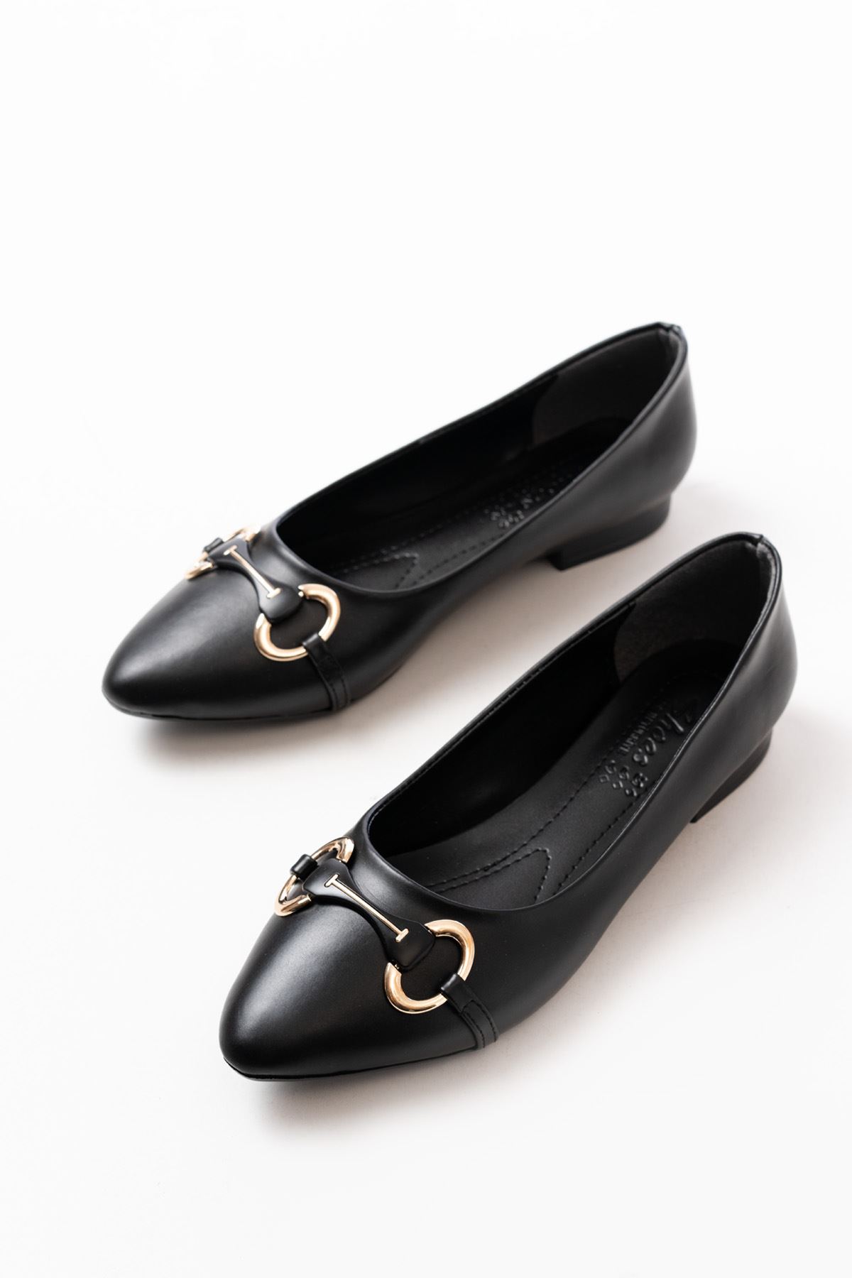 İNF-129 Siyah Günlük Taş Aksesuarlı Babet