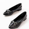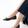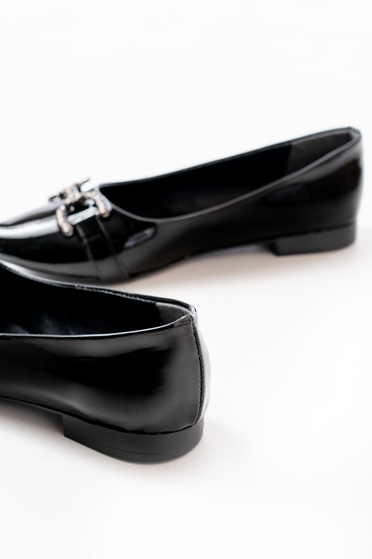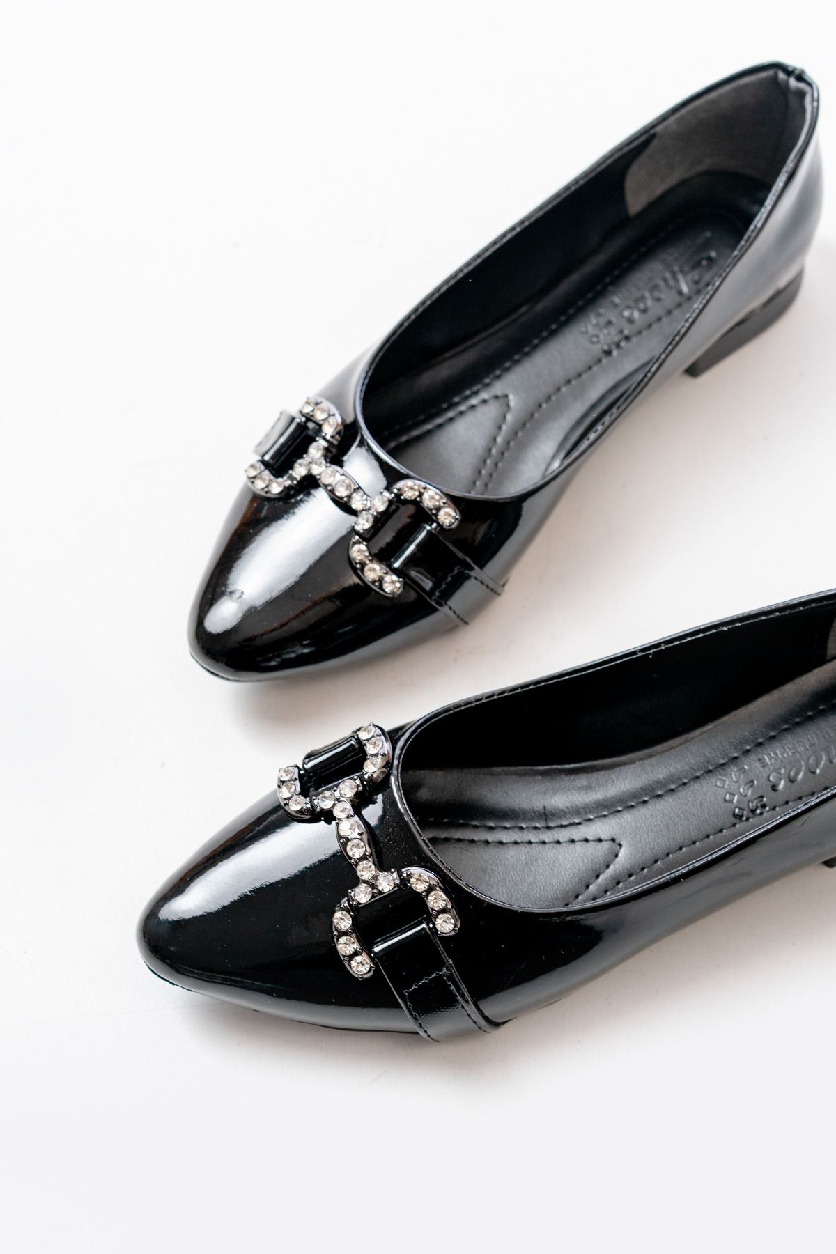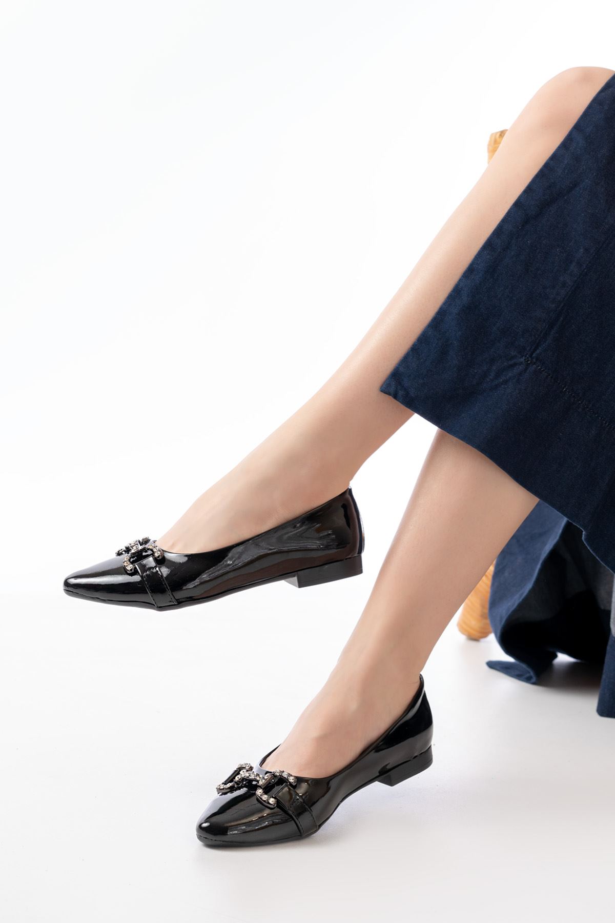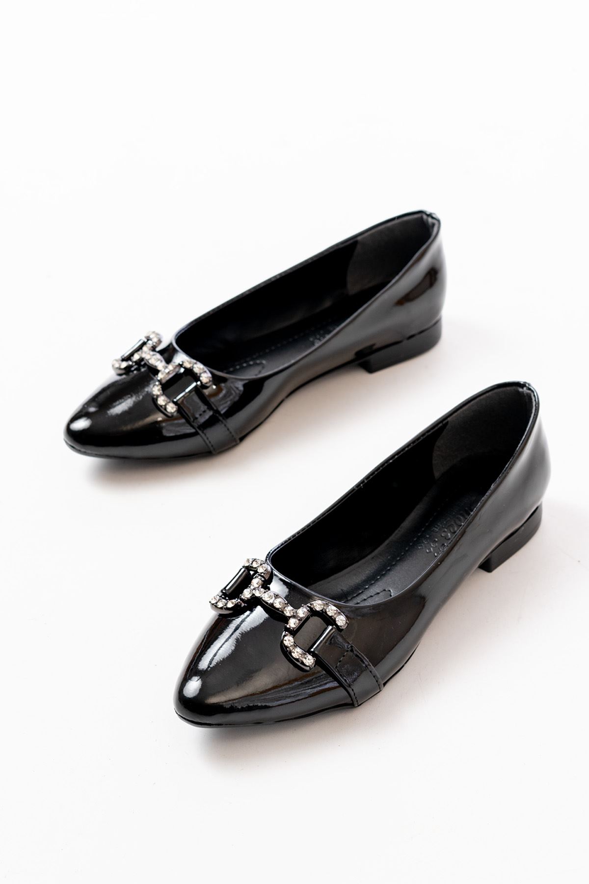 İNF-133 Siyah Rugan Taşlı Tokalı Günlük Kadın Babet