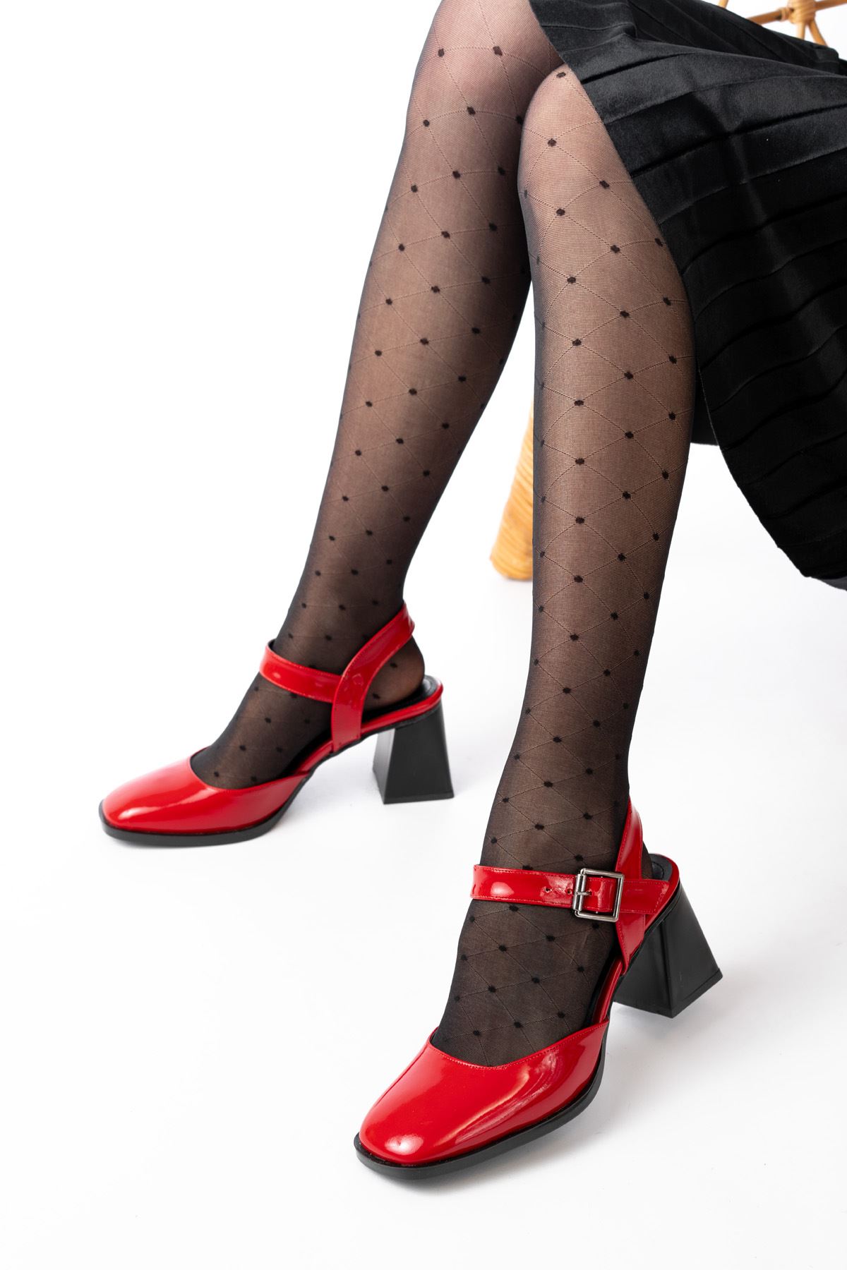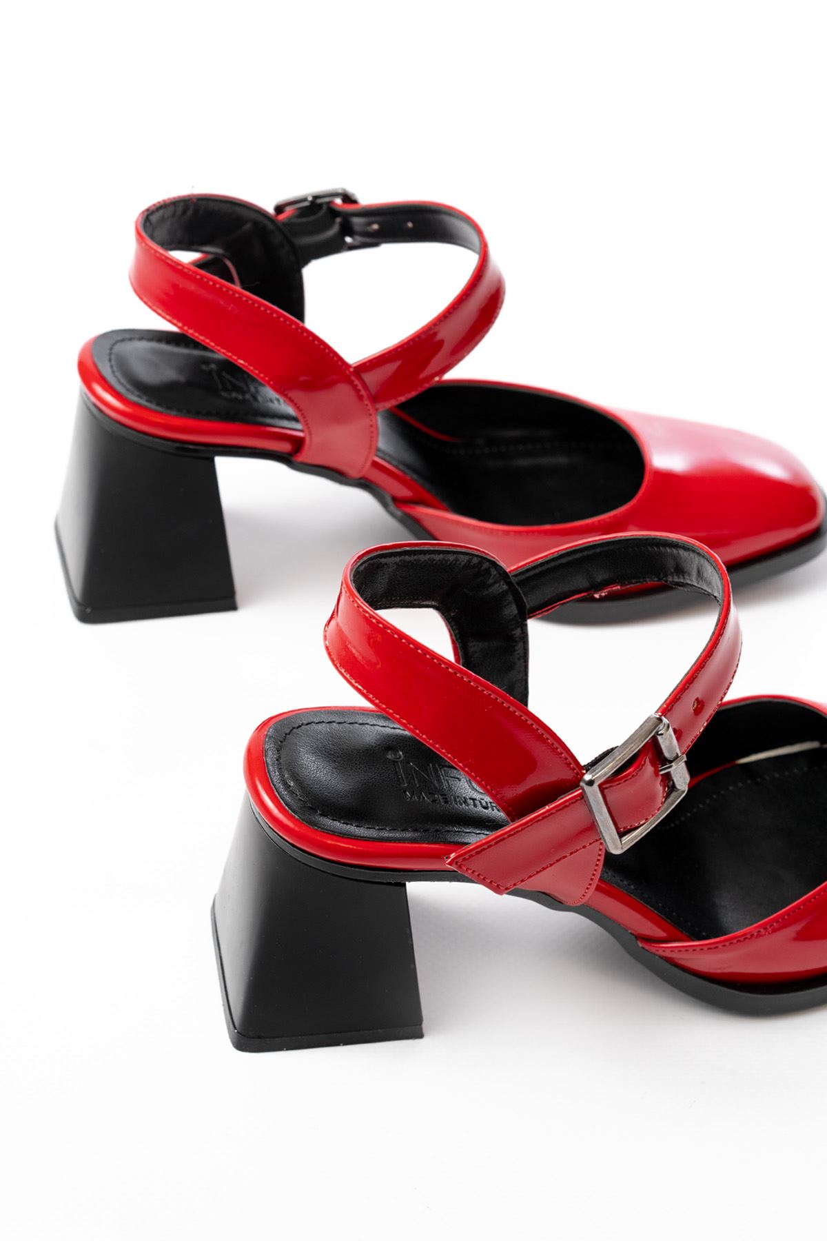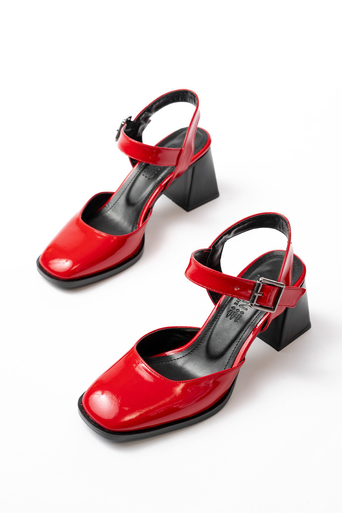 İNF-40450 Kırmızı Rugan Günlük Arkası Açık Topuklu Bayan Ayakkabı