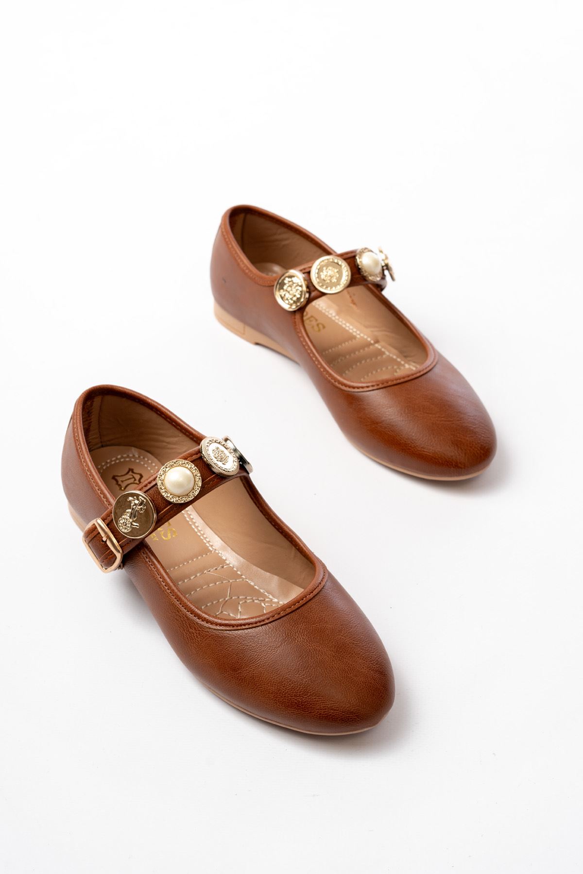 İNF-6363 Taba Baret Tokalı Günlük Bayan Ayakkabı