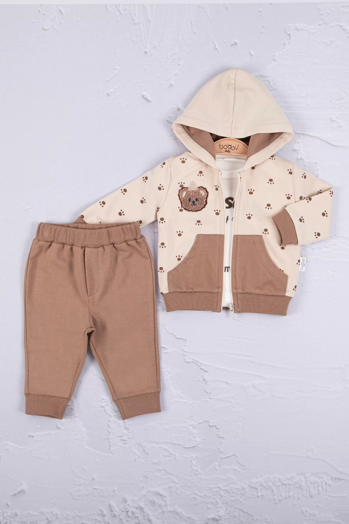 Persona Bear Nakışlı % 100 Pamuk 3’li Erkek Bebek Takım