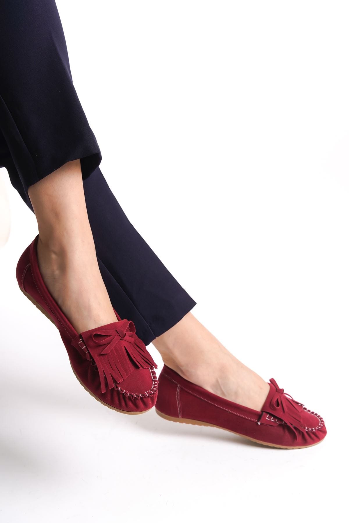 PS-100 Bordo Süet Püsküllü Günlük Kadın Babet