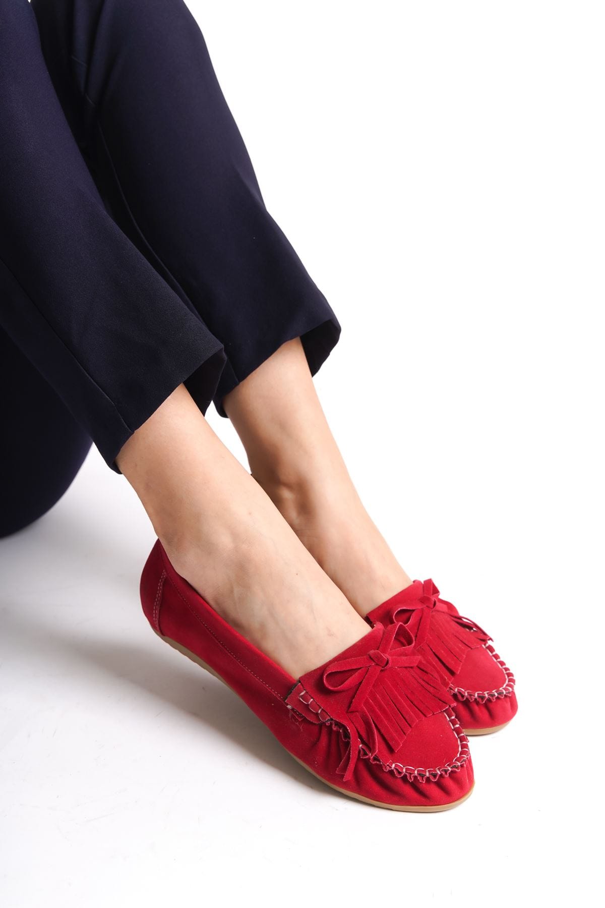 PS-100 Kırmızı Süet Püsküllü Günlük Kadın Babet