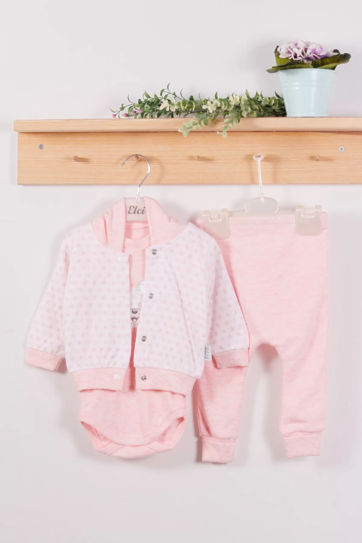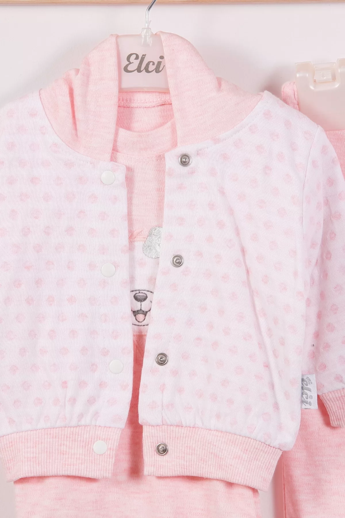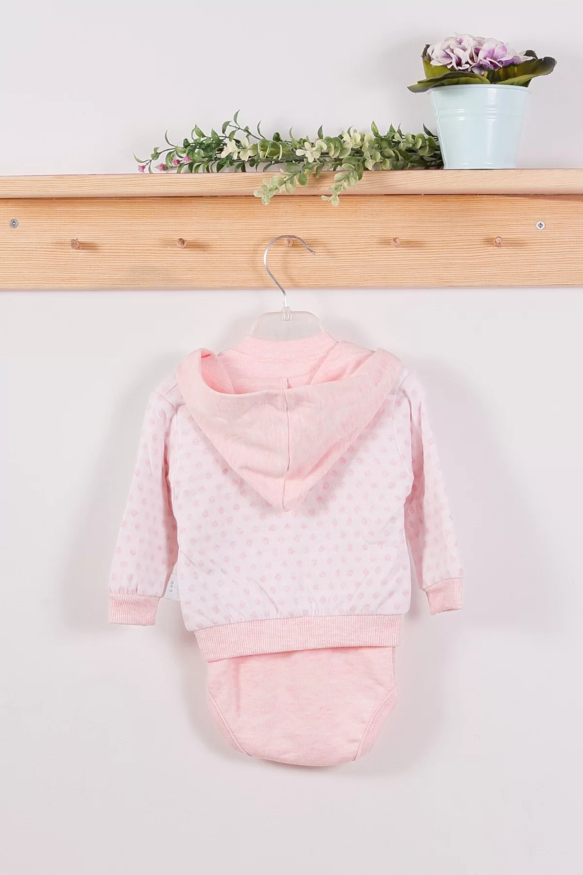 Puan Desenli Kapişonlu % 100 Pamuk 3’lü Kız Bebek Takım