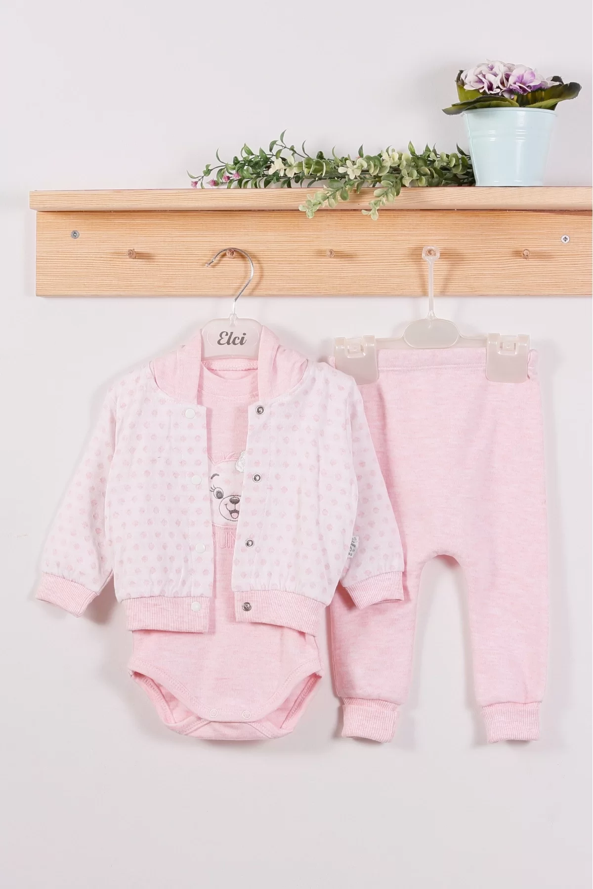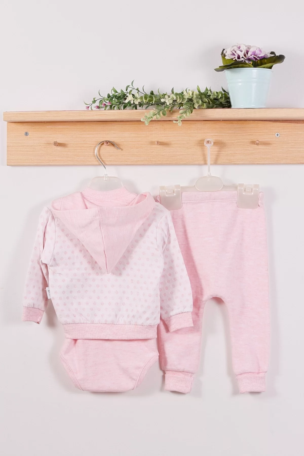 Puan Desenli Kapişonlu % 100 Pamuk 3’lü Kız Bebek Takım