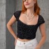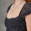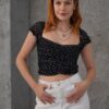 Puantiyeli Belden Oturtmalı Tül Siyah Bluz