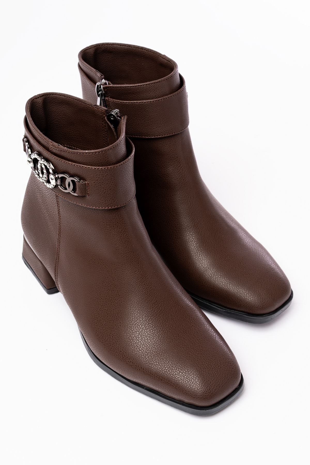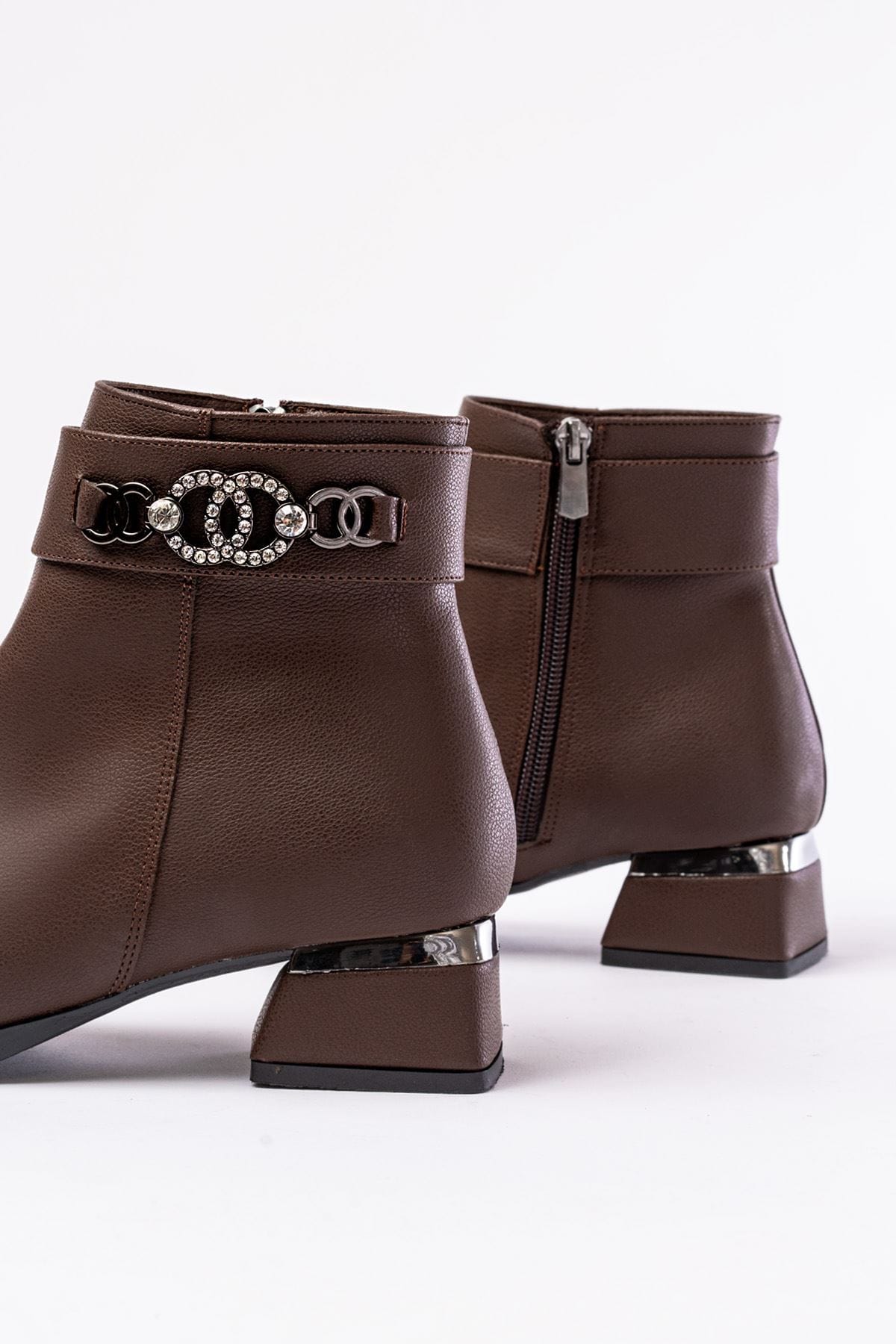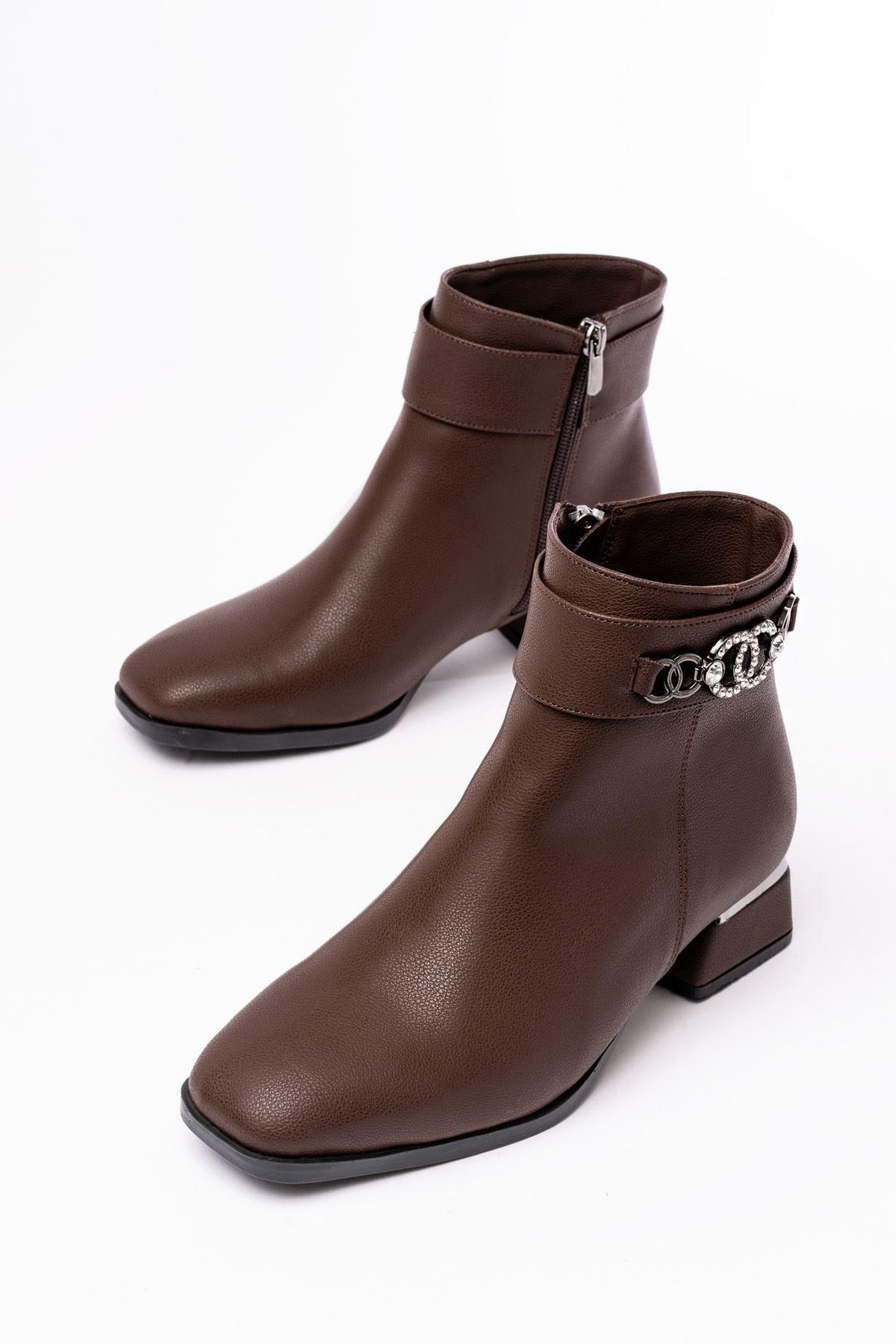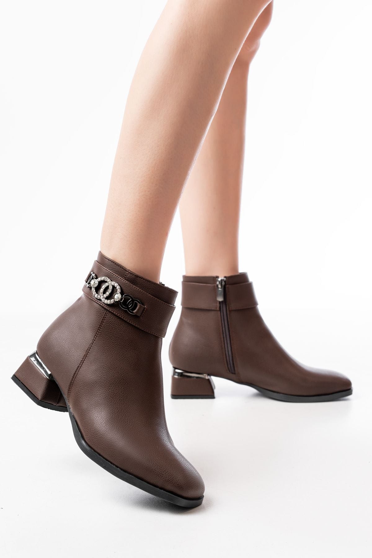 RM-502 Kahverengi Toka Aksesuarlı Topuklu Fermuarlı Günlük Kadın Bot