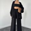 Siyah Alice Gömlek Ve Bol Kesim Pantolon Takım