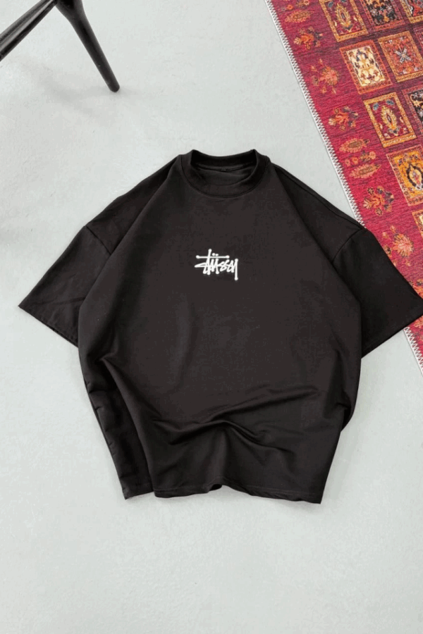 Unisex Bisiklet Yaka Baskılı Double Oversize T-Shirt – Beyaz