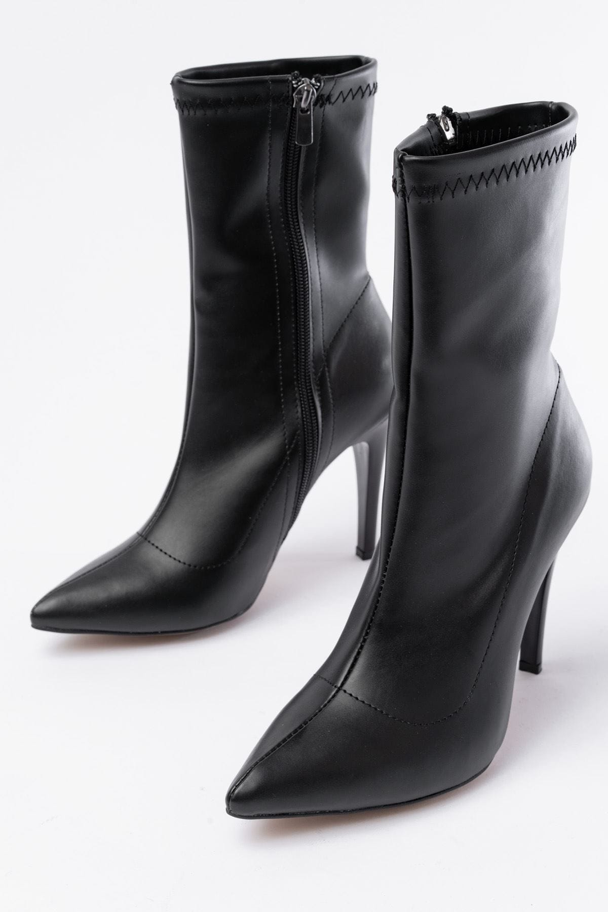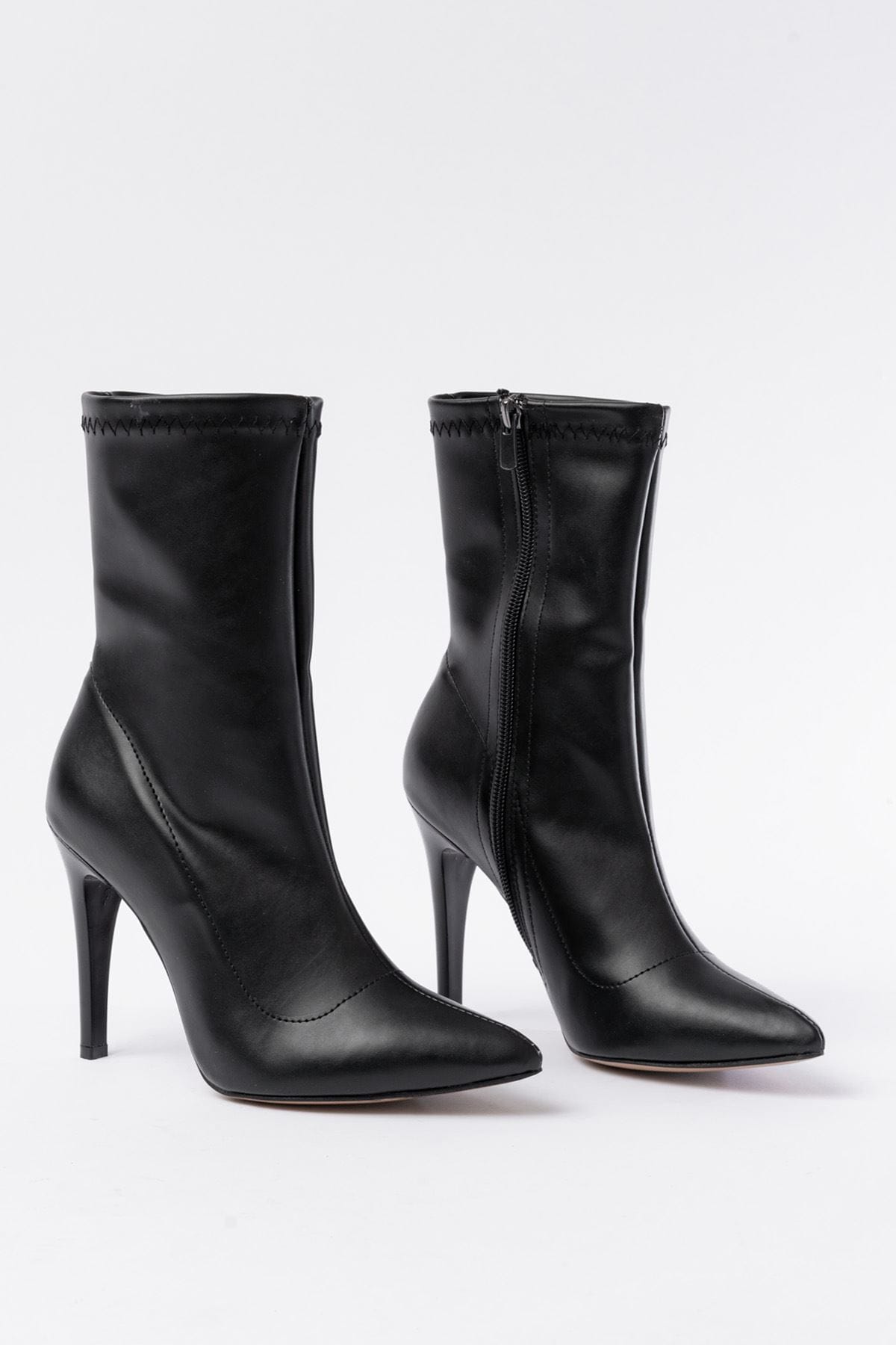 VRT-4811 Siyah Yüksek İnce Topuklu Fermuarlı Kadın Bot