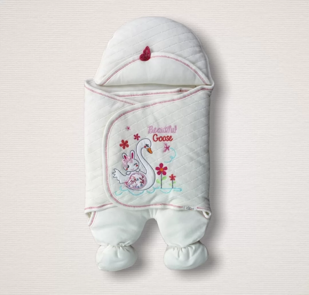 Yenidoğan Çiçekli Ördek Nakışlı Şapkalı Kız Bebek Ayaklı Kundak Bebek Battaniyesi