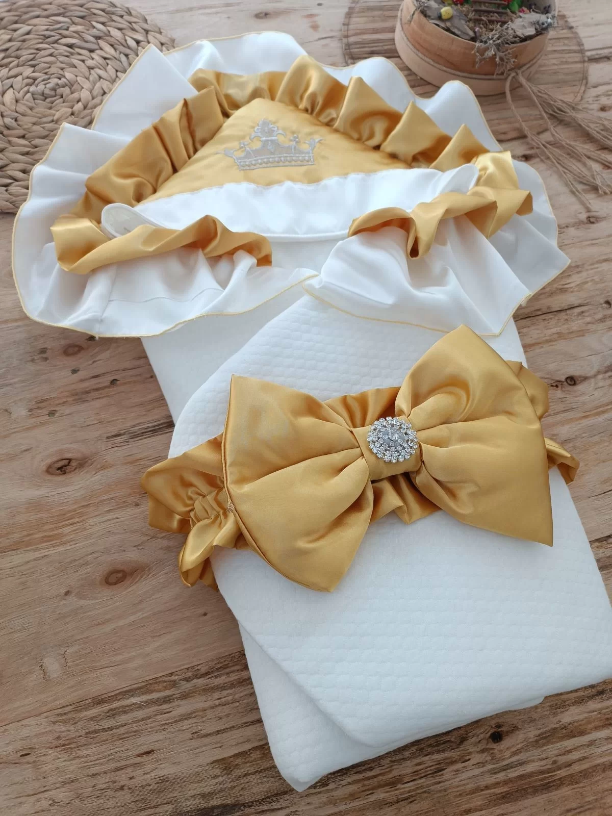 Yenidoğan Mehtap Lüks Kelebek Taç Nakışlı Bebek Battaniyesi Kundak