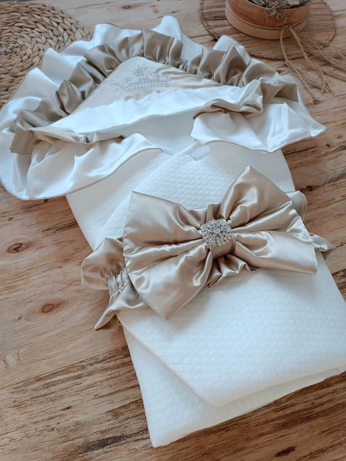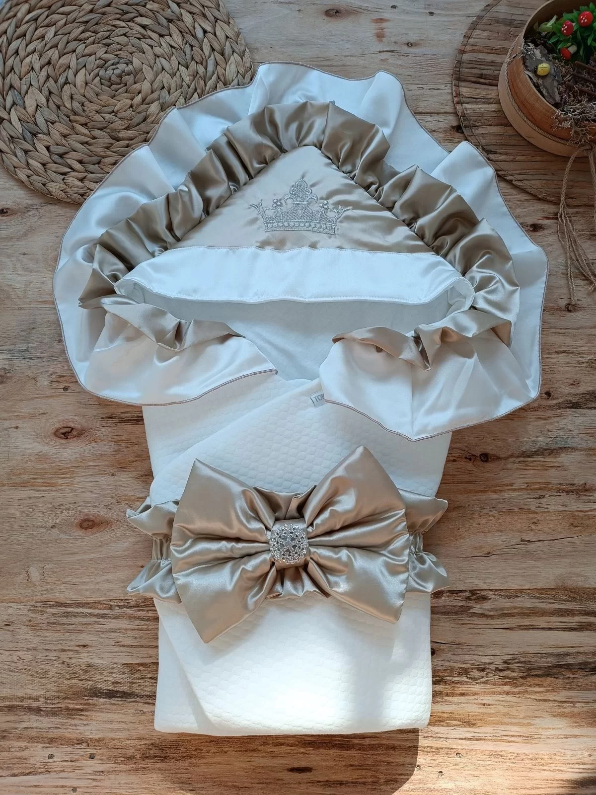 Yenidoğan Mehtap Lüks Kelebek Taç Nakışlı Bebek Battaniyesi Kundak