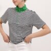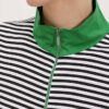 Yeşil Polo Yaka Fermuarlı Çizgili Tişört 0497