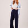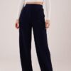 Yüksek Bel Bol Paça Krep Lacivert Pantolon