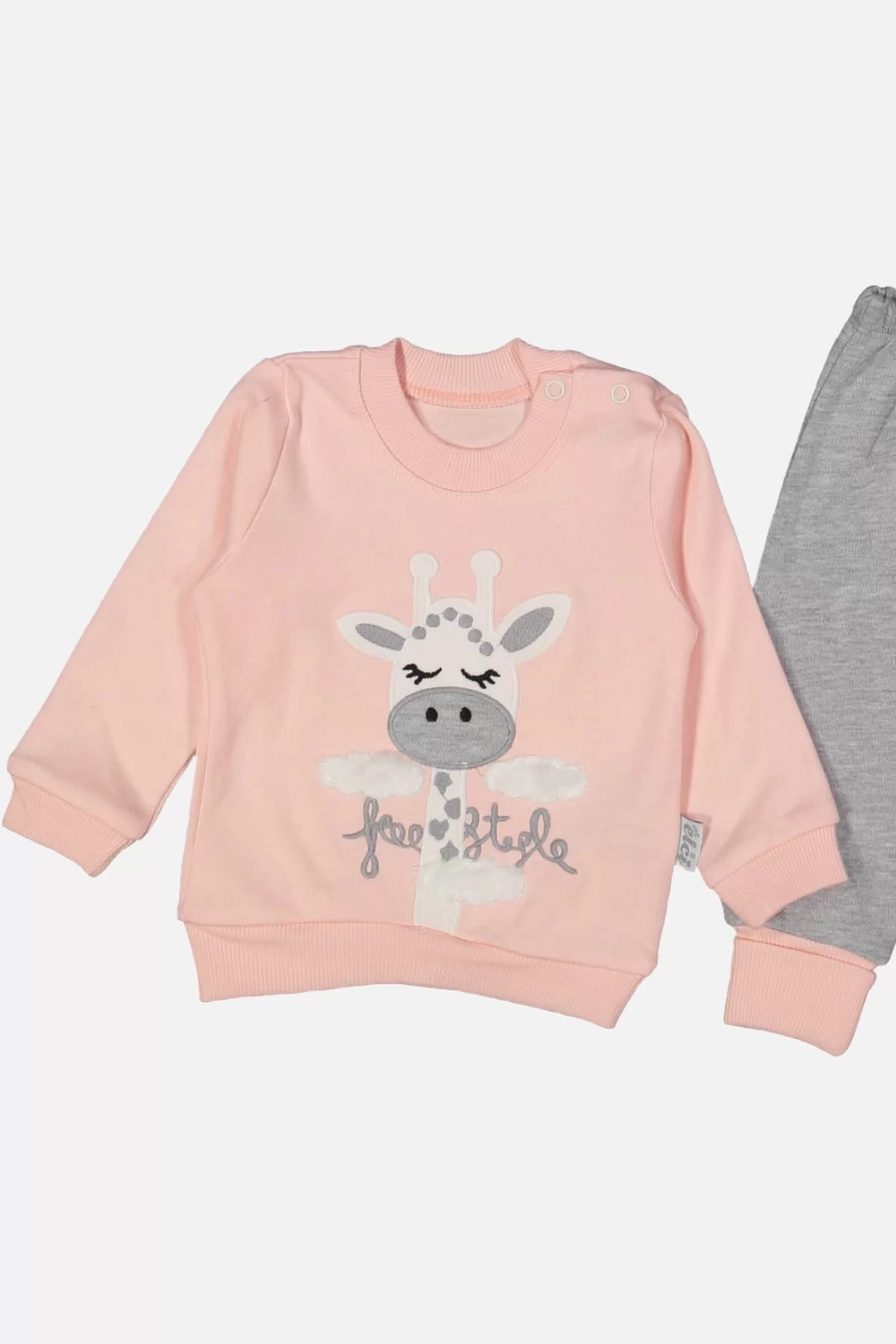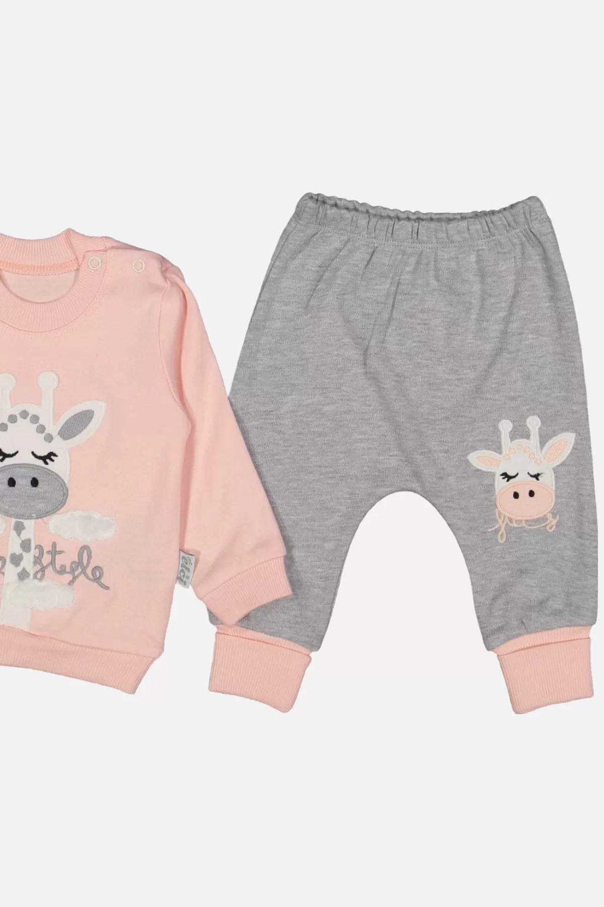 Zürafa Nakışlı % 100 Pamuk Kız Bebek Takımı