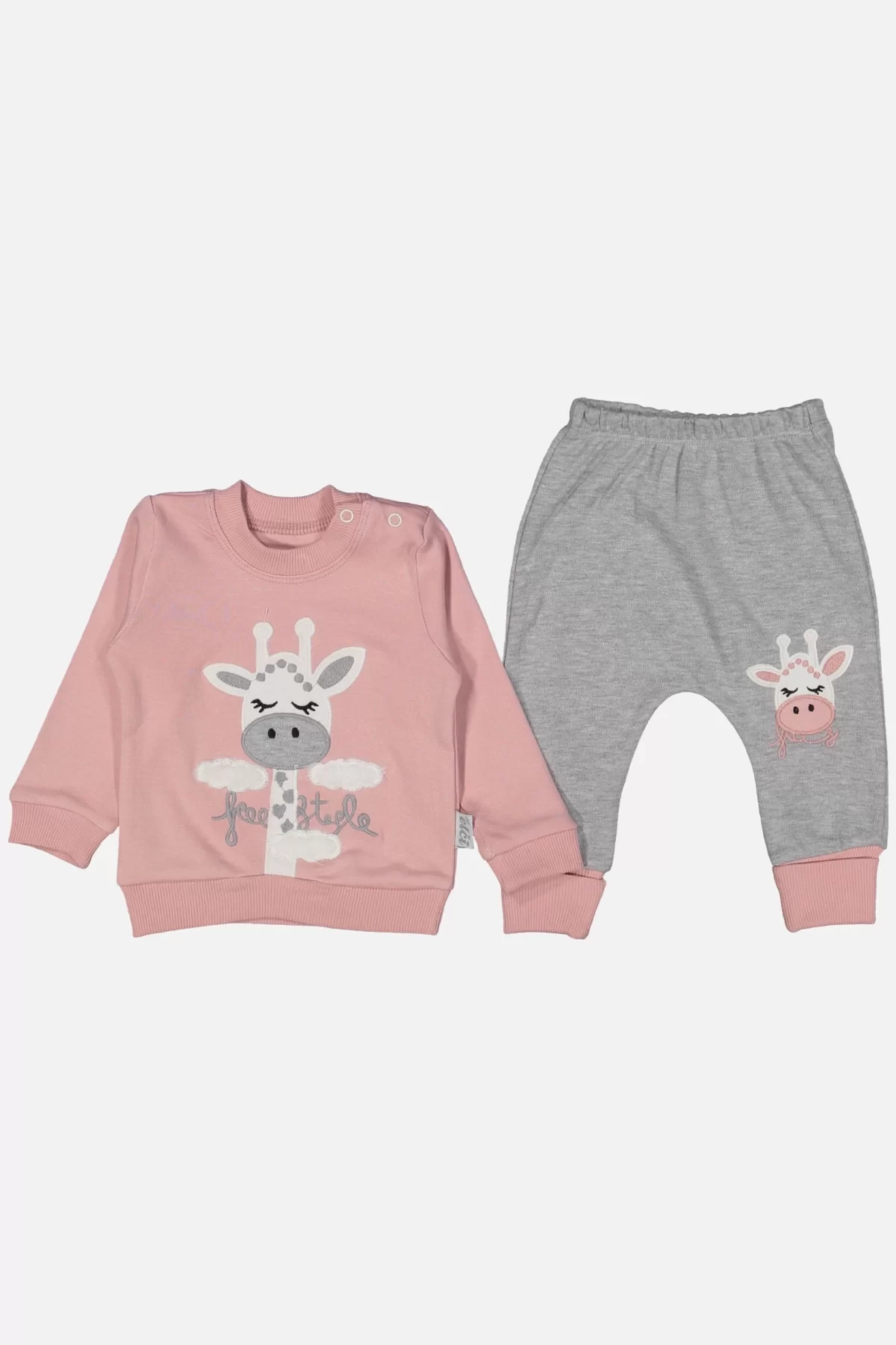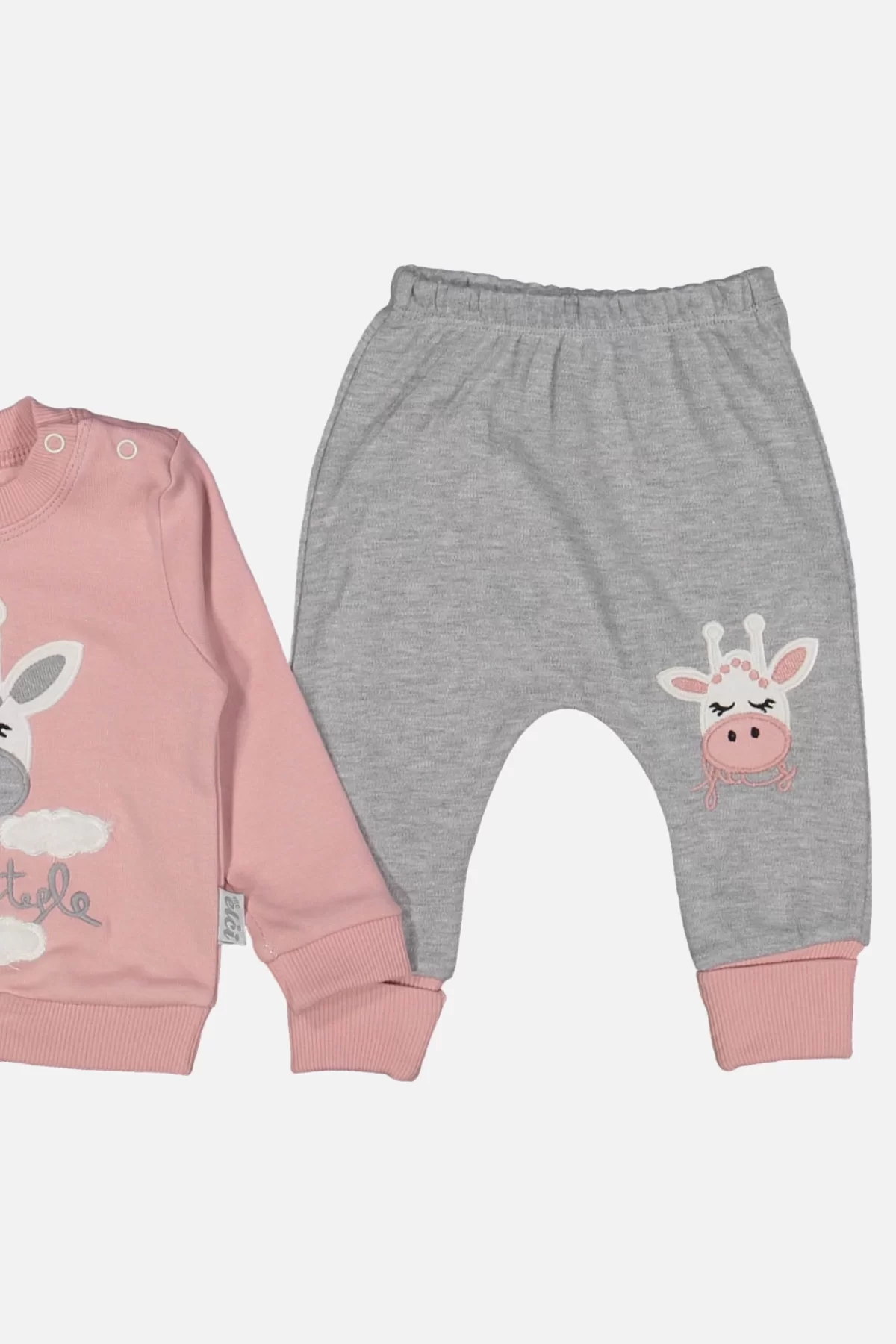Zürafa Nakışlı % 100 Pamuk Kız Bebek Takımı
