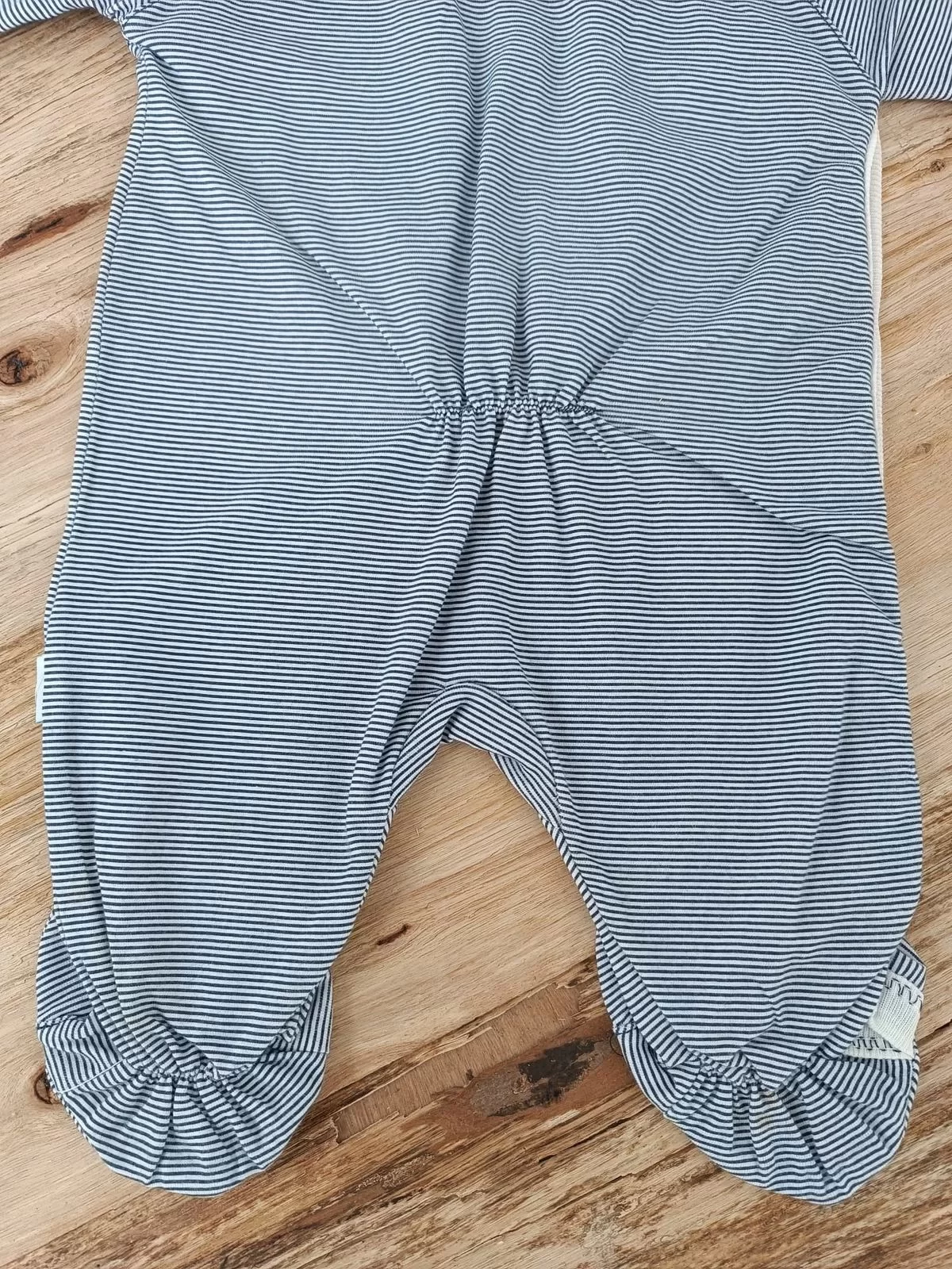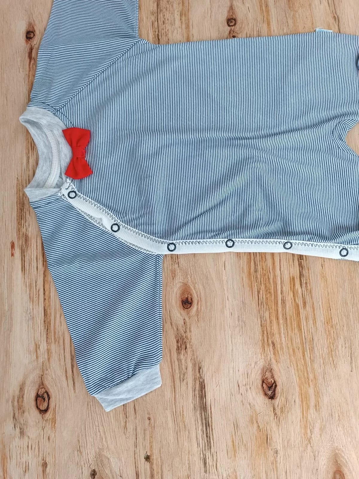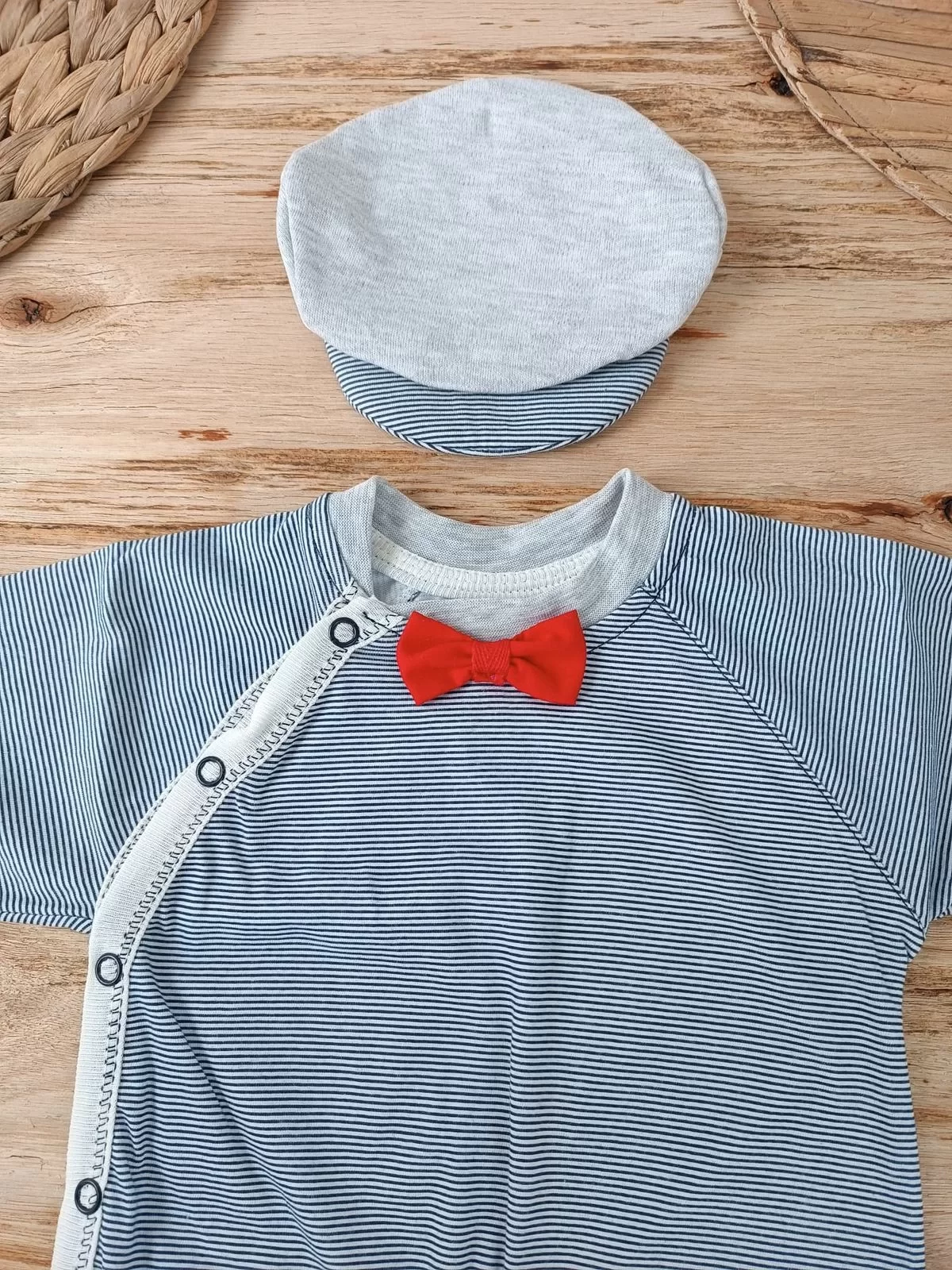 0-3 3-6 Ay Papyonlu Çizgi Desen Çıtçıt Kapama Kasketli Erkek Bebek Tulumu