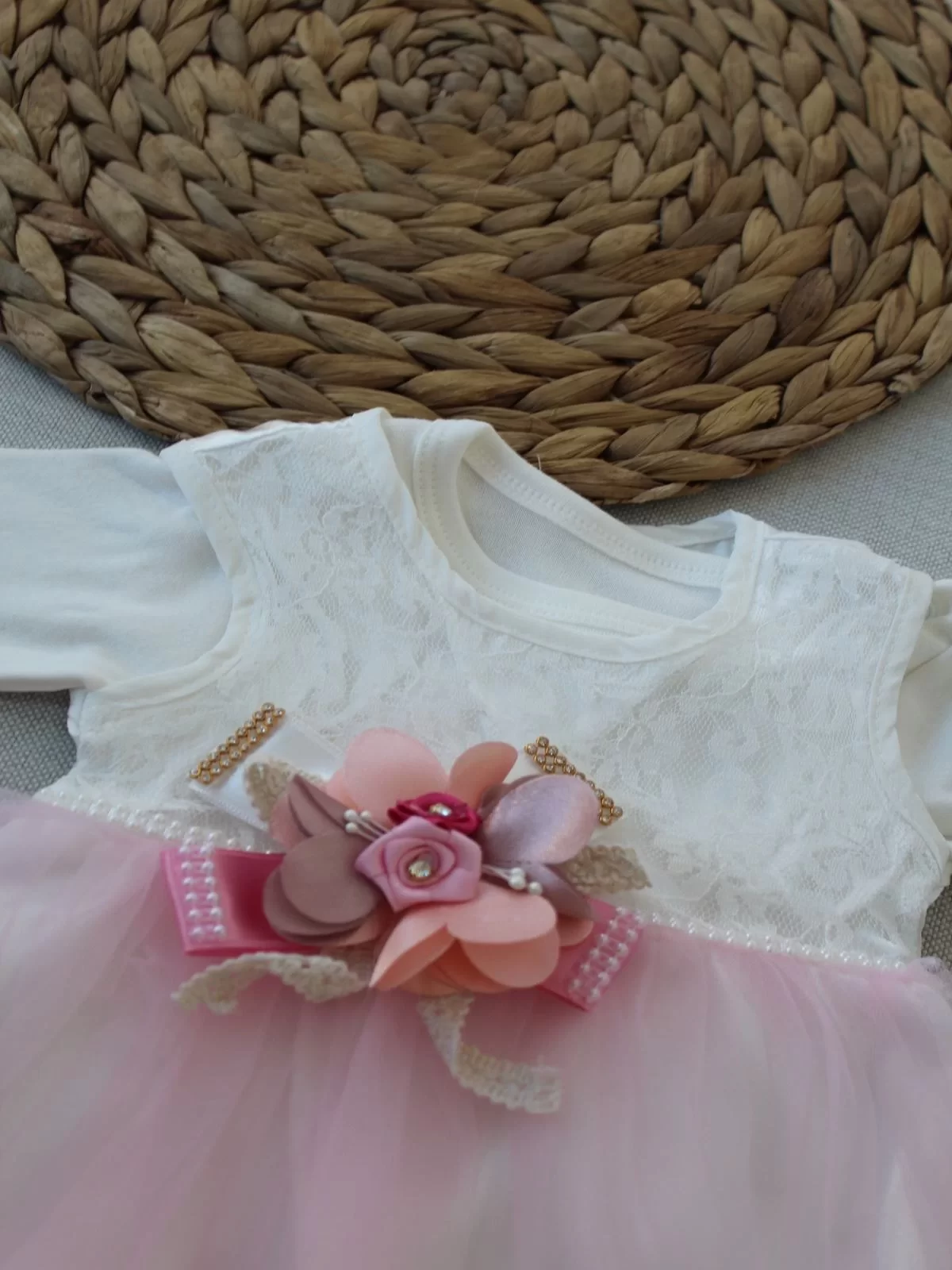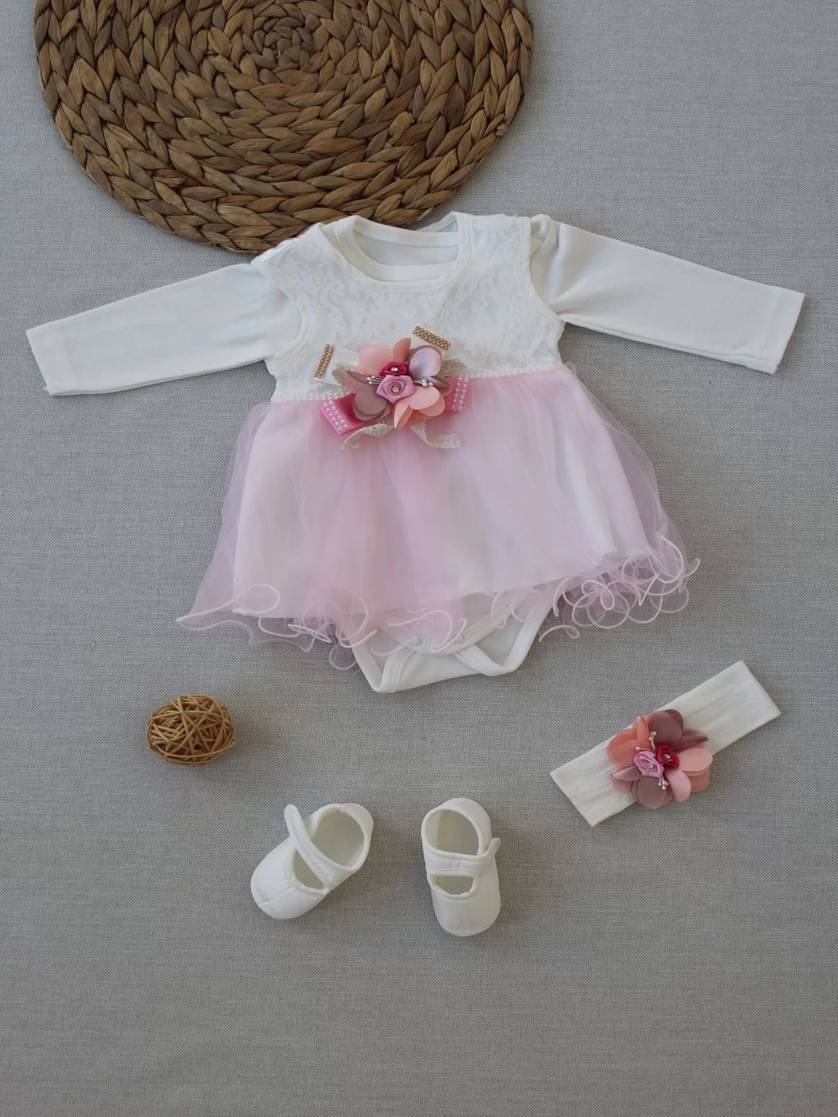 0-6 Ay Tül Etekli Kurdelalı Taş Detaylı Kız Bebek Hediyelik, Mevlütlük, Kınalık 3lü Takım