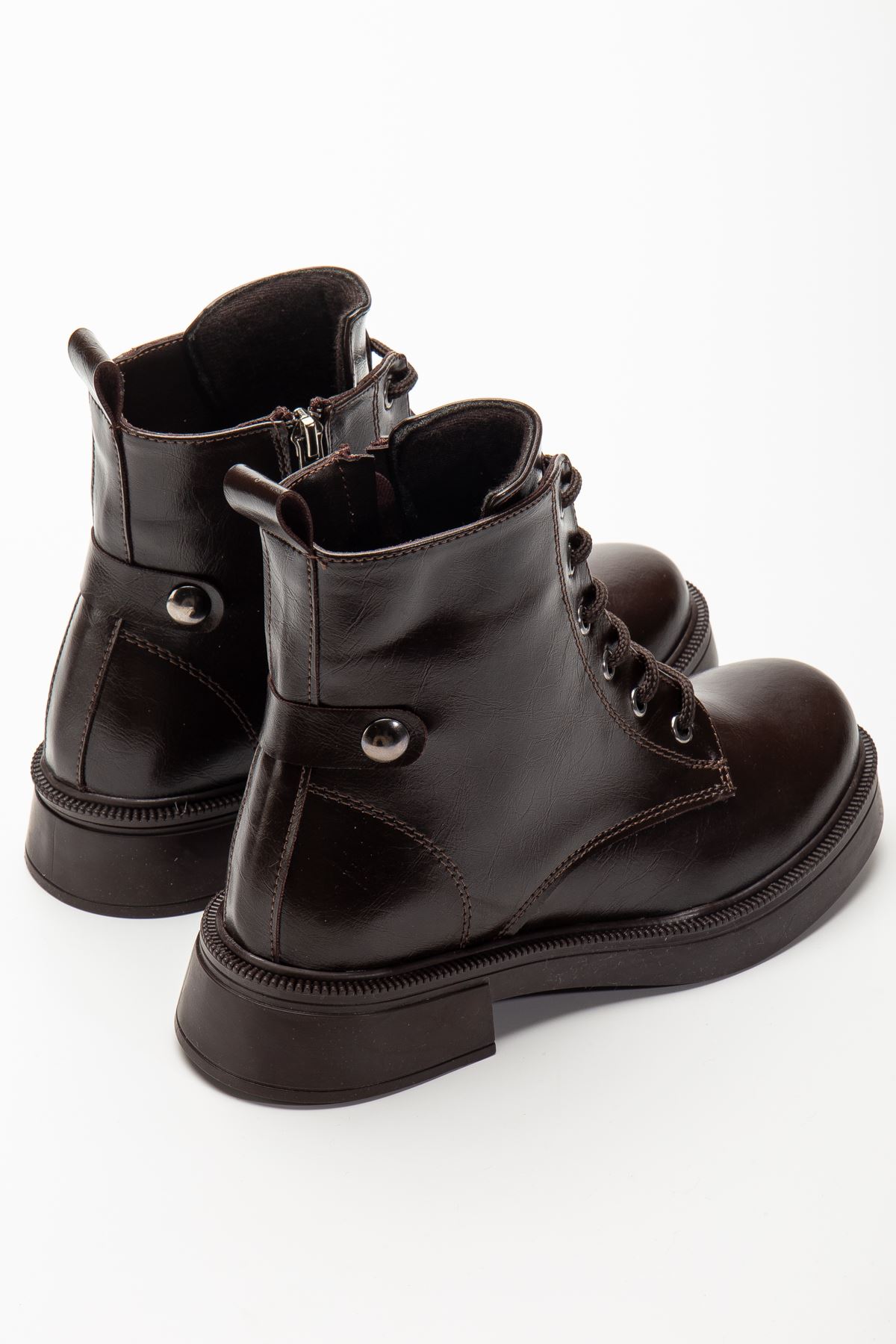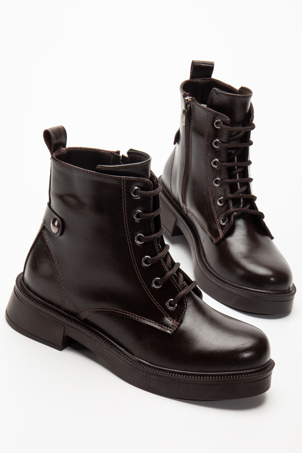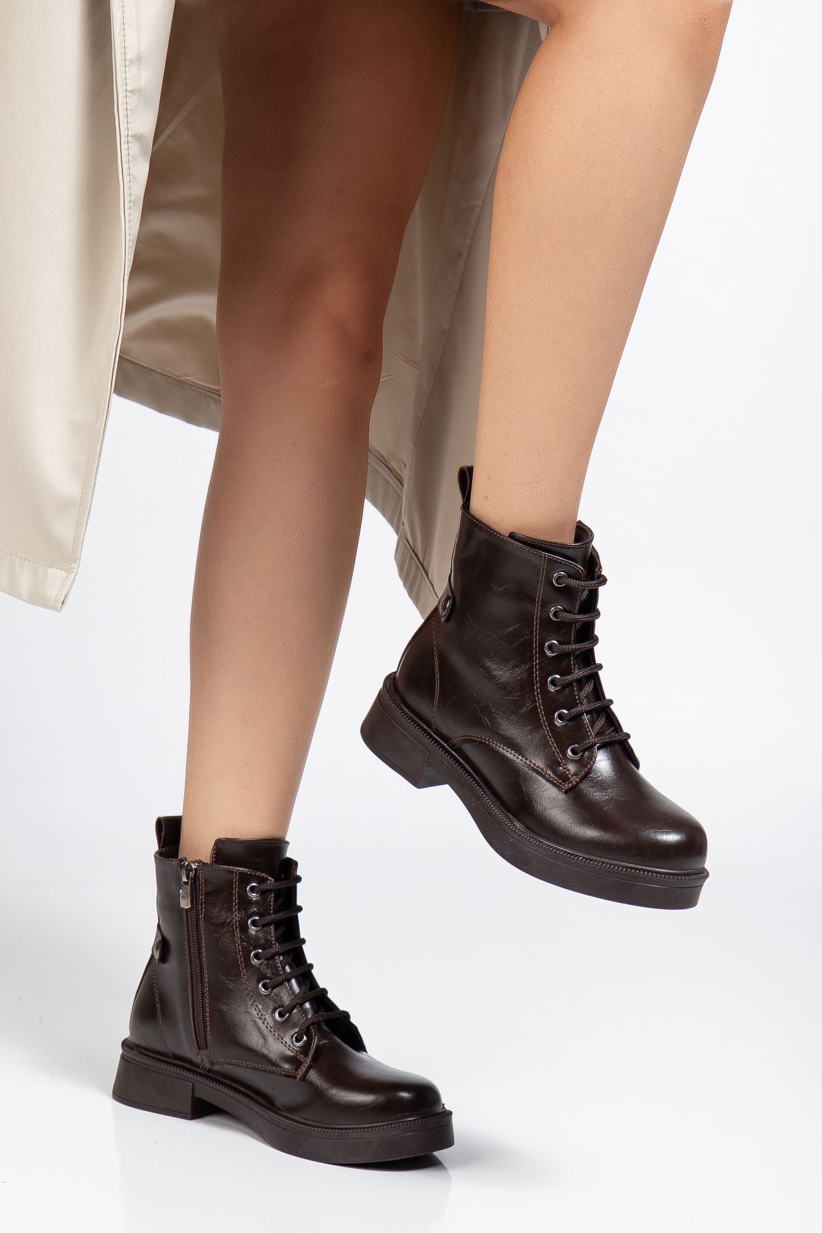 02-2003 Kahve Kırışık Rugan Bağcıklı Fermuarlı Günlük Kadın Bot