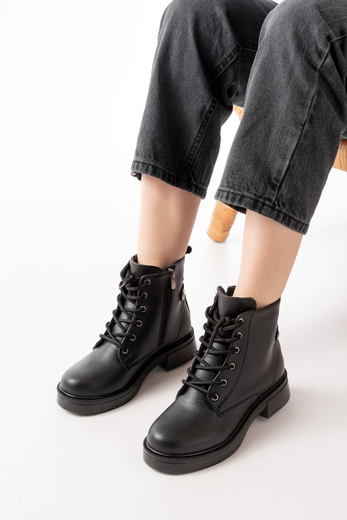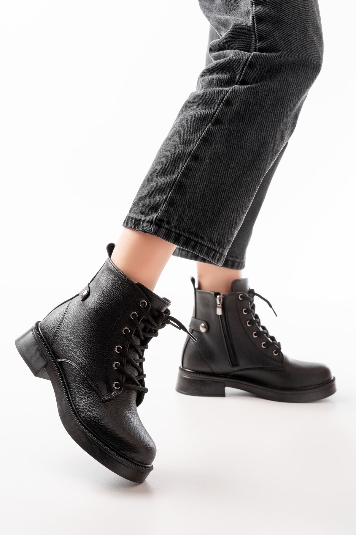 02-2003 Siyah Galata Bağcıklı Fermuarlı Günlük Kadın Bot