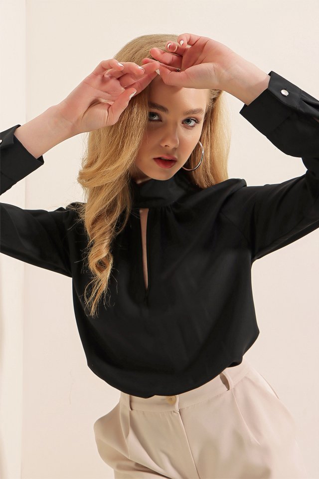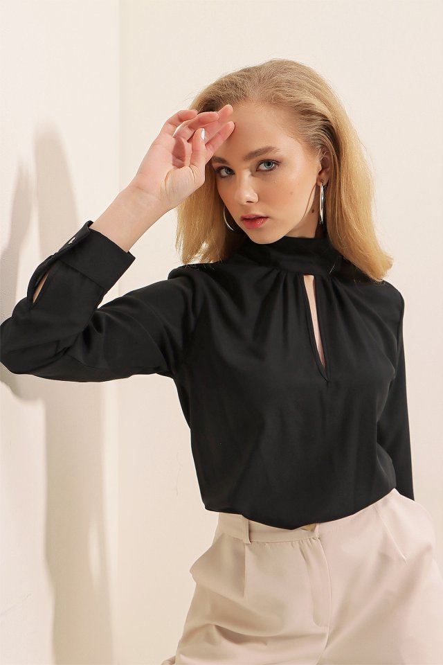 0418 Pencere Detaylı Bluz – Siyah