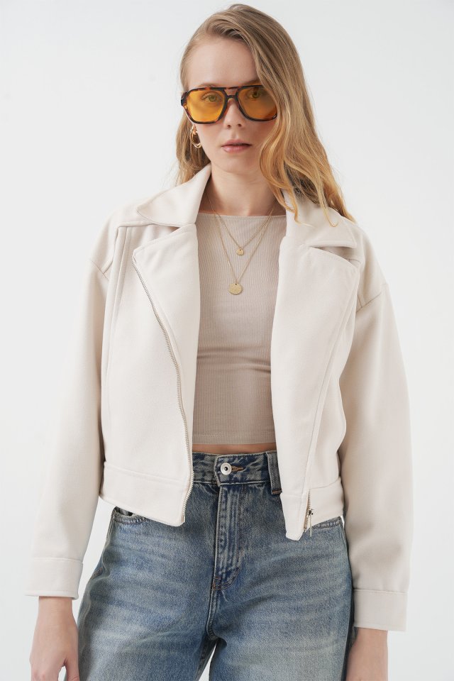 0717 Kısa Kaşe Ceket – Ekru