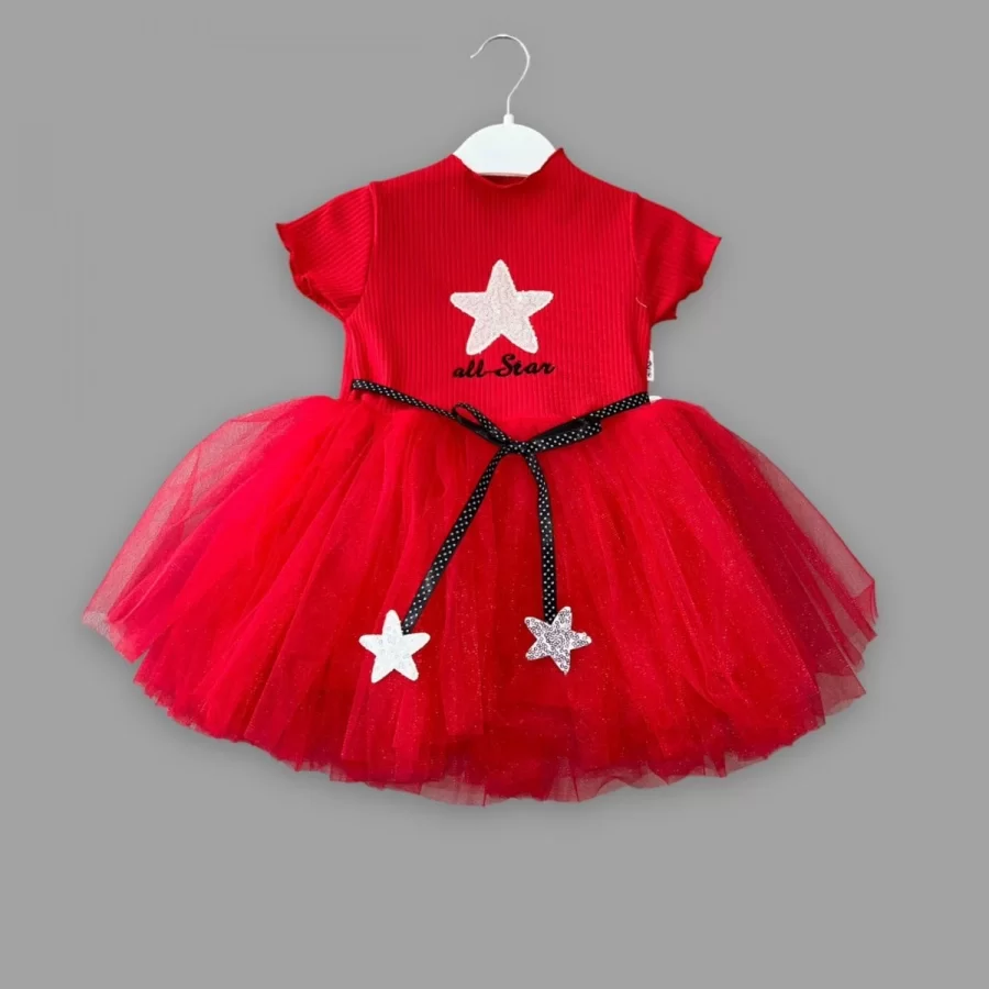 1-2-3 Yaş All Star Payetli Yıldız Nakışlı Astarlı Kız Bebek Elbisesi
