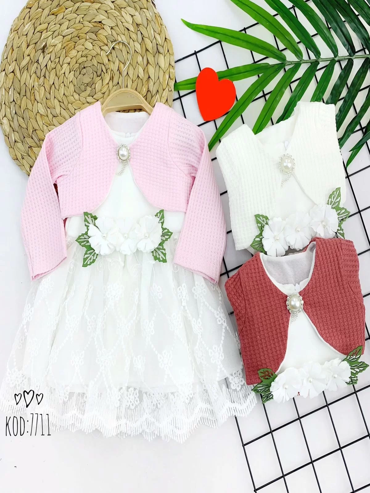 1-2-3 Yaş Bolerolu Çiçekli Tül Etekli 2li Kız Çocuk Elbisesi