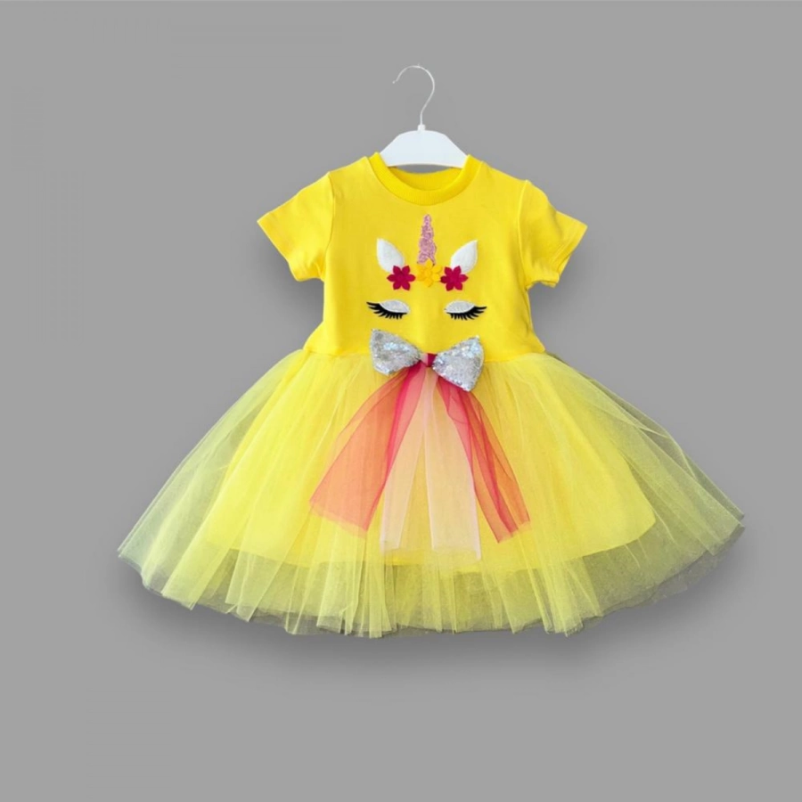 “1-2-3 Yaş Gökkuşağı Kuyruklu Payet Pony Nakışlı Kız Bebek Tütü Elbisesi Sarı” için yorum yapan ilk kişi siz olun