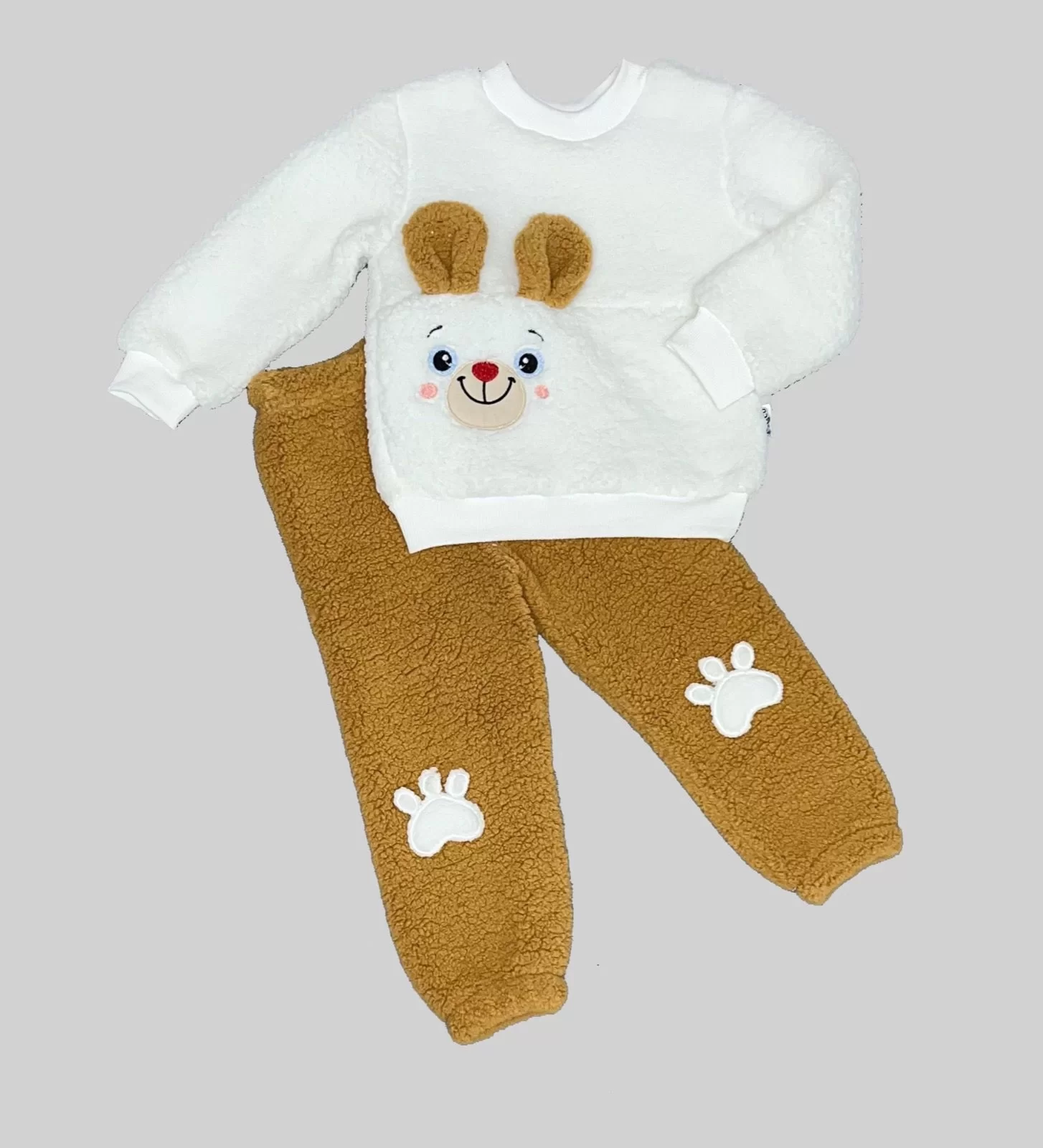 1-2-3 Yaş Kulaklı Patili Ayıcık Kuzu Kumaş Sweat Patili Pantolon Uzun Kollu Kız Erkek 2 Li Takımı