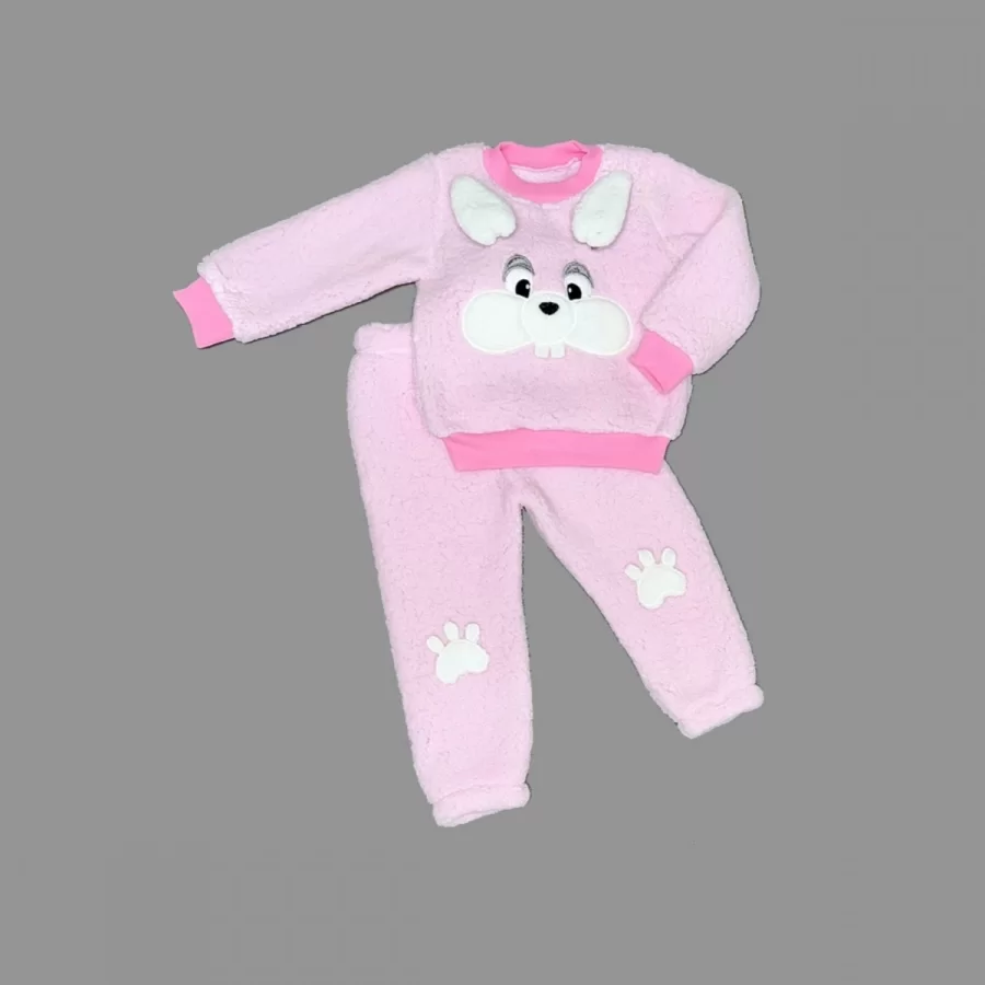 1-2-3 Yaş Kulaklı Tavşan Figürlü Kuzu Kumaş Sweat Pantolon Uzun Kollu Kız Erkek 2 Li Takımı