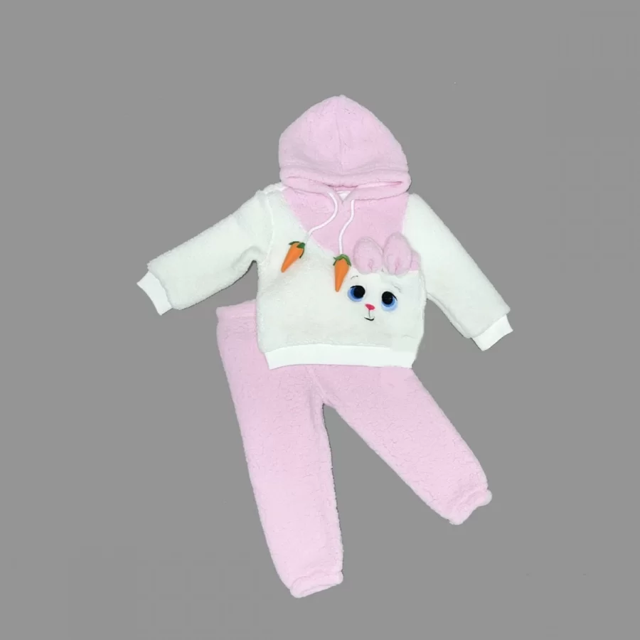 1-2-3 Yaş Kulaklı Tavşan Havuç İpli Kapşonlu Kuzu Kumaş Sweat Pantolon Uzun Kollu Kız Erkek 2 Li Takımı