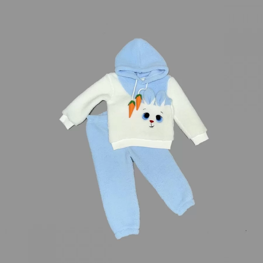 1-2-3 Yaş Kulaklı Tavşan Havuç İpli Kapşonlu Kuzu Kumaş Uzun Kollu Kız Erkek 2 Li Takımı Mavi