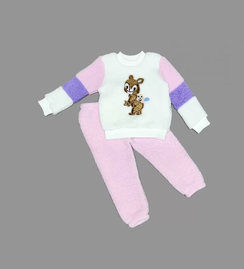 1-2-3 Yaş Oyuncu Sincap Nakışlı Kuzu Kumaş Sweat Pantolon Uzun Kollu Kız Erkek 2 Li Takımı