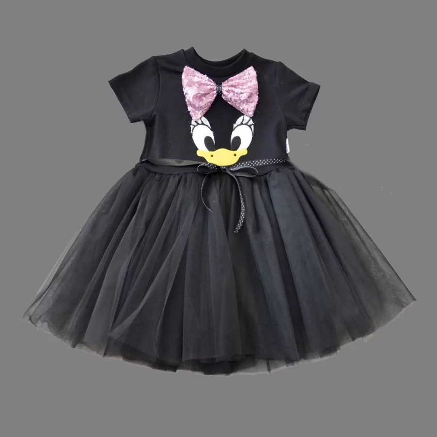 1-2-3 Yaş Payet Fiyonk Tokalı Ördek Nakışlı Astarlı Kız Bebek Tütü Elbisesi