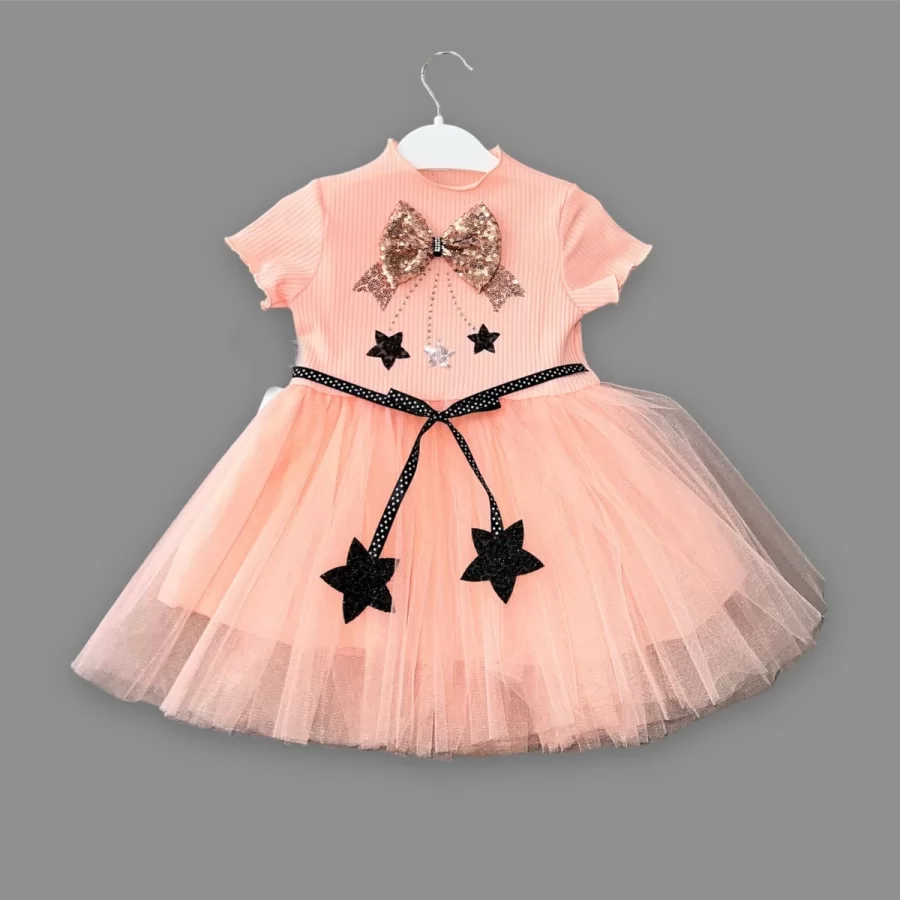 1-2-3 Yaş Payetli Yıldız Nakışlı Astarlı Etek Kız Bebek Tütü Elbisesi