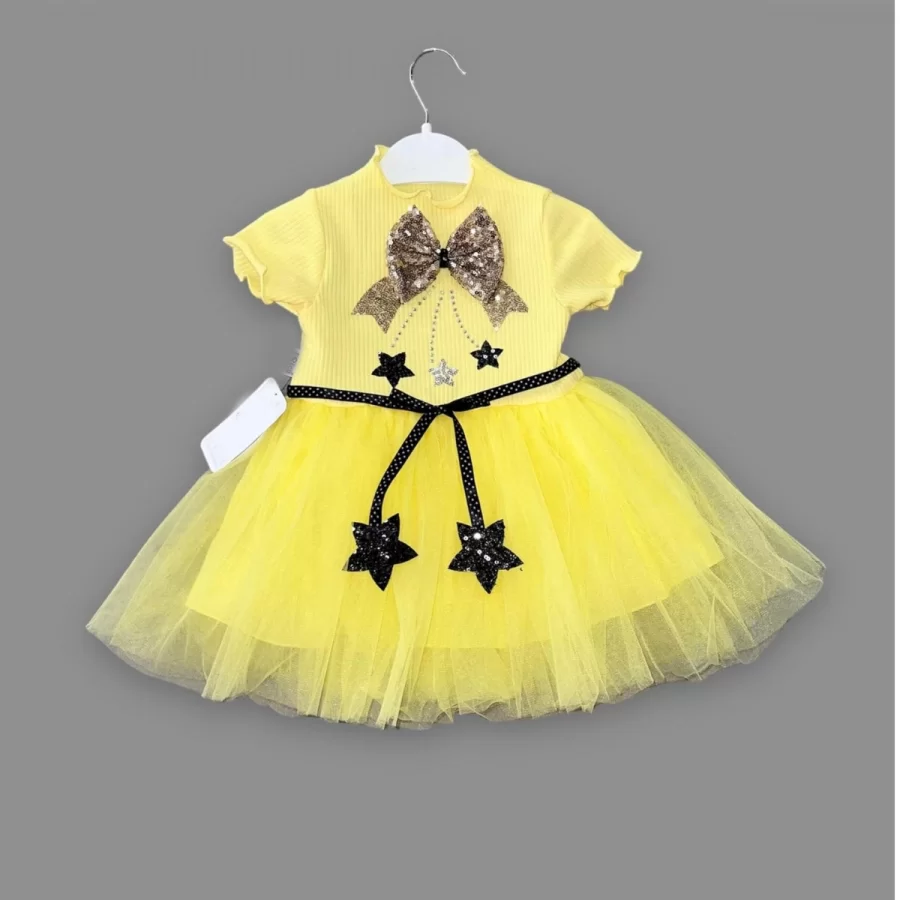 1-2-3 Yaş Payetli Yıldız Nakışlı Astarlı Etek Kız Bebek Tütü Elbisesi