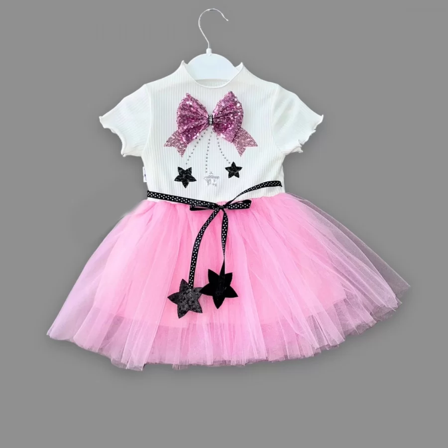 / 1-2-3 Yaş Payetli Yıldız Nakışlı Astarlı Etek Kız Bebek Tütü Elbisesi Beyaz