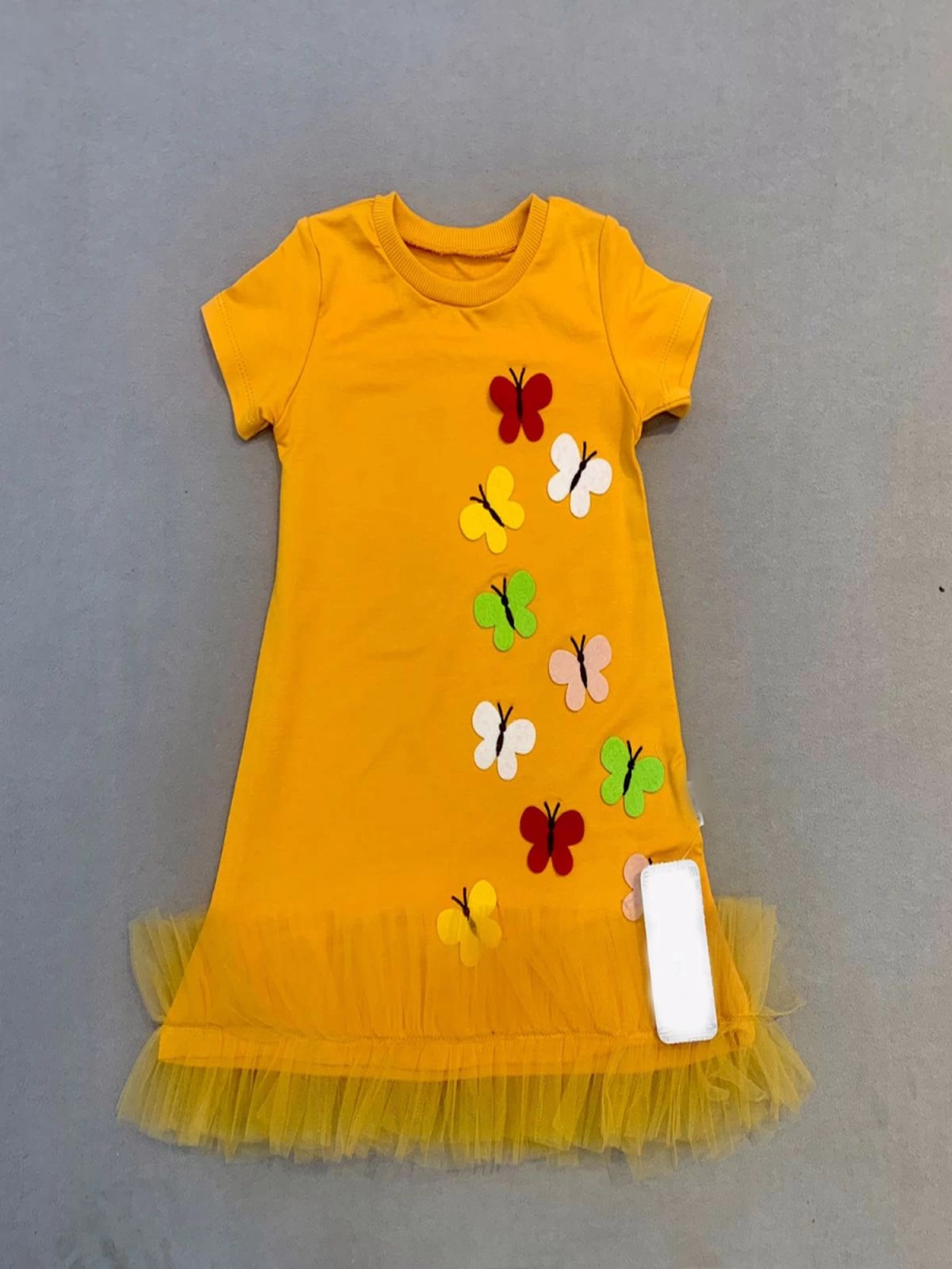 “1-2-3 Yaş Renkli Kelebekler Nakışlı Eteği Fırfırlı Jile Çocuk Elbisesi Turuncu” için yorum yapan ilk kişi siz olun