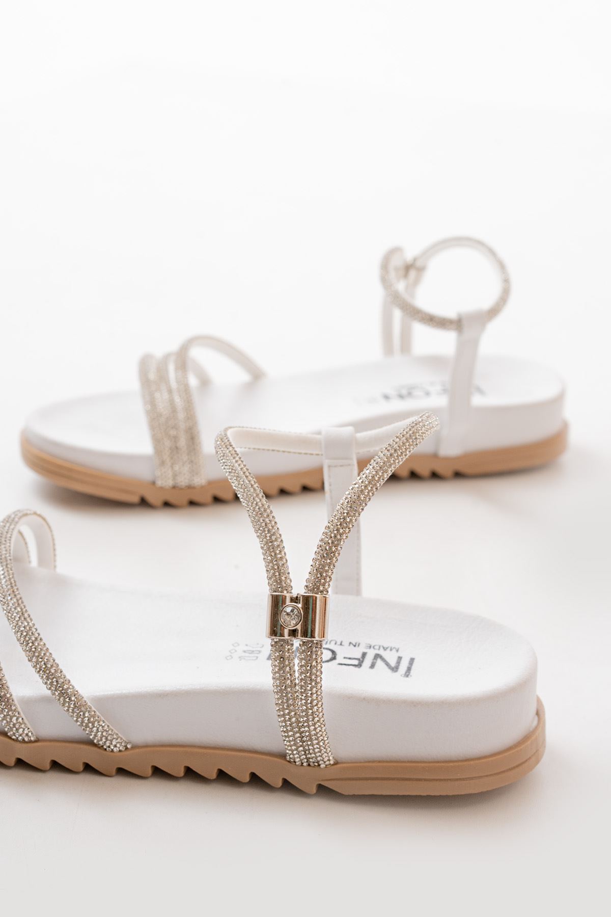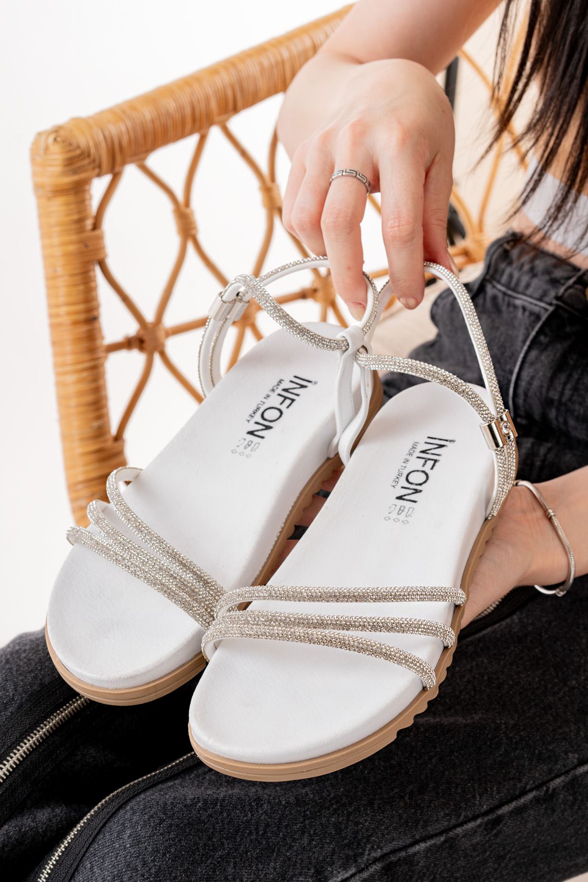 1001-1100 Beyaz Gümüş Taşlı Günlük Kadın Sandalet