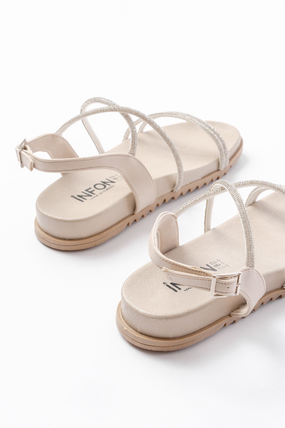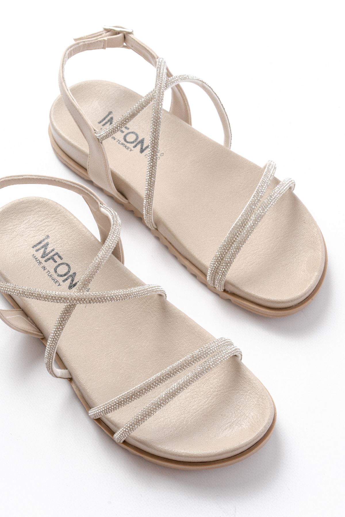 1001-1105 Bej Gümüş Taşlı Günlük Kadın Sandalet