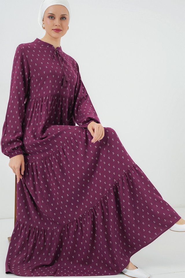 1627 Yaka Bağcıklı Tesettür Elbise – Çapa Mor
