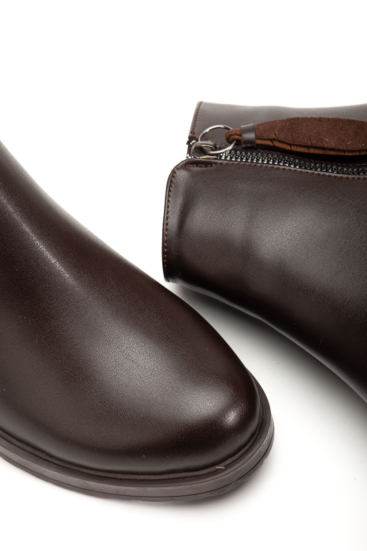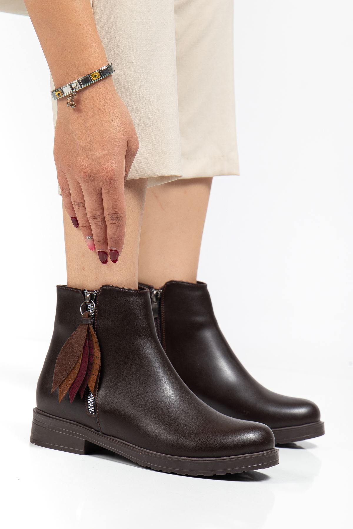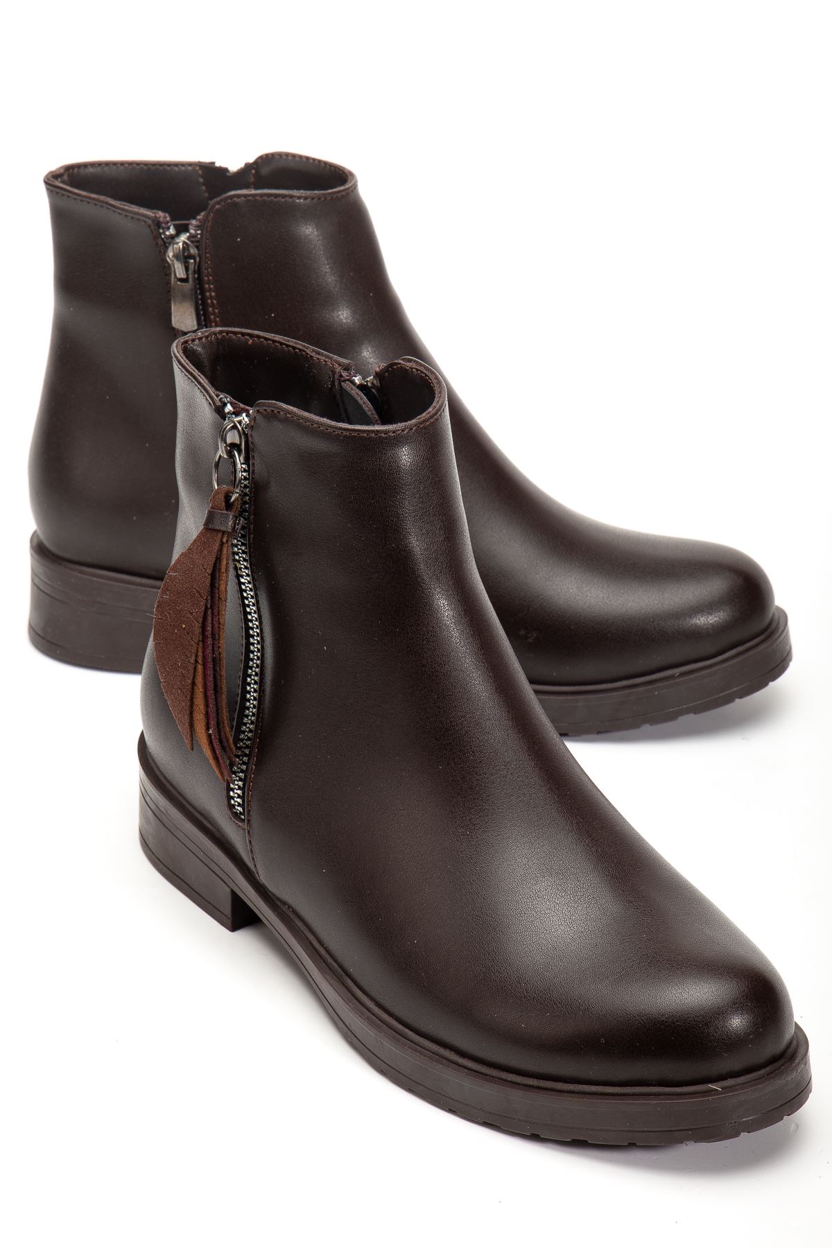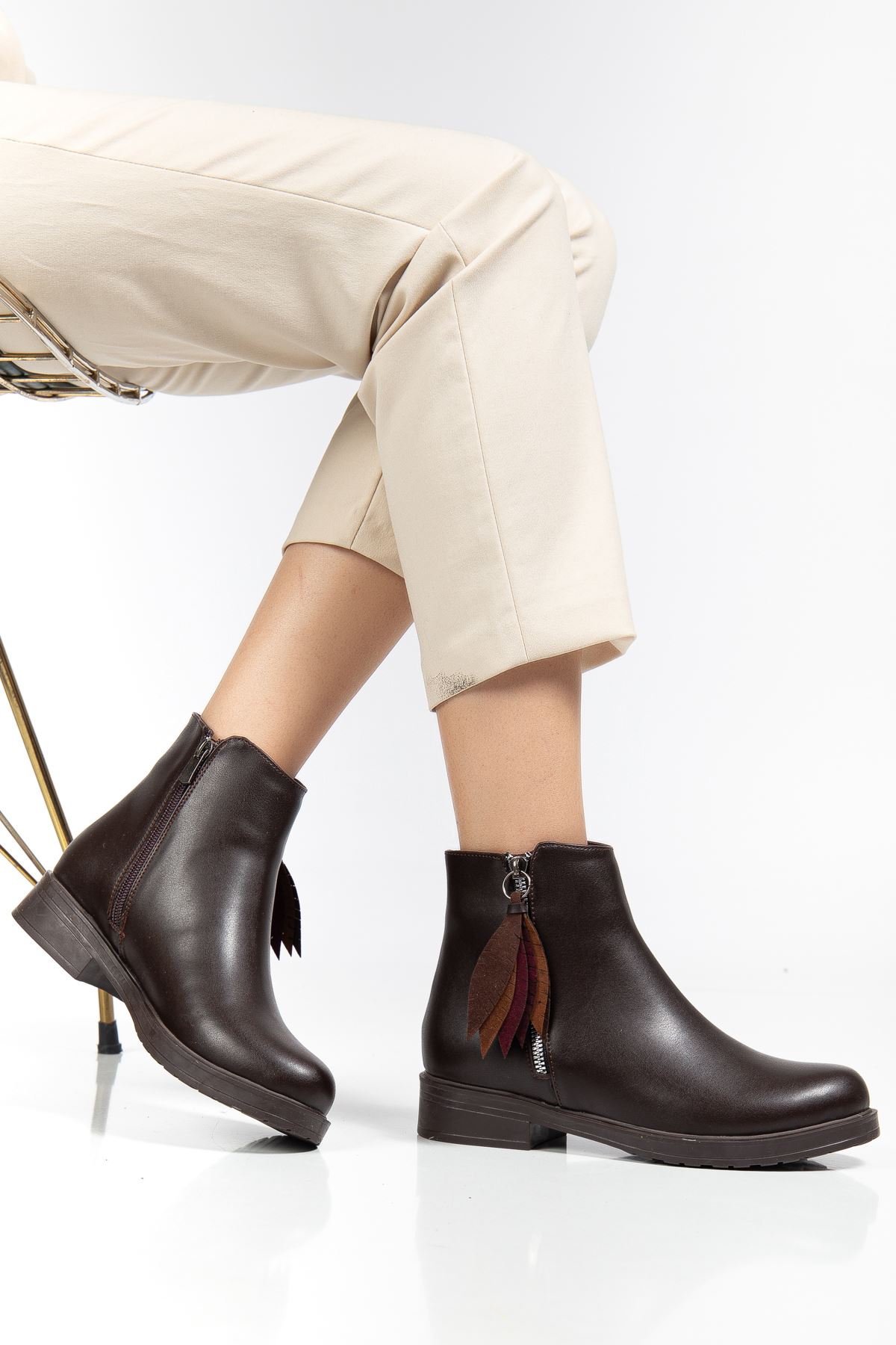 165-205 Kahve Yaprak Desenli Fermuarlı Günlük Kadın Bot